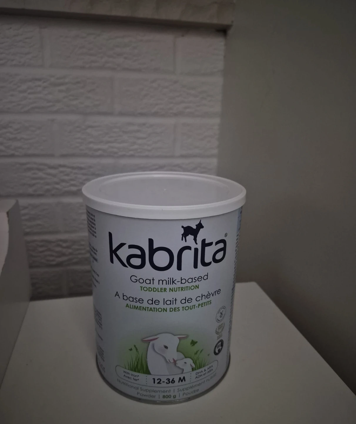 Selling a can of Kabrita Goat Milk-Based Toddler Nutrition. It's designed for toddlers aged 12-36 months and comes in an 800g can. It's a goat milk-based formula with a nutritional supplement. Perfect for your little one!