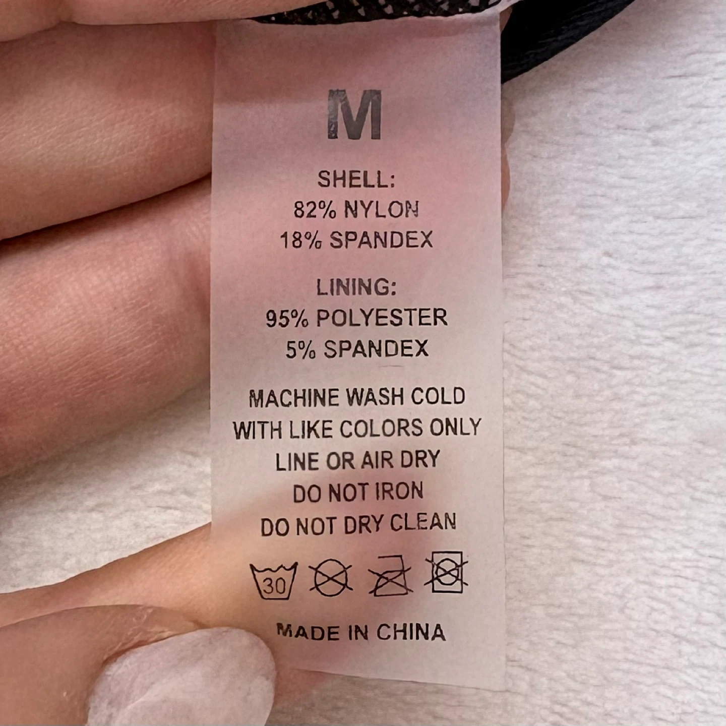 Material: 82% Nylon/18% Spandex exterior with 95% Polyester/5% Spandex lining