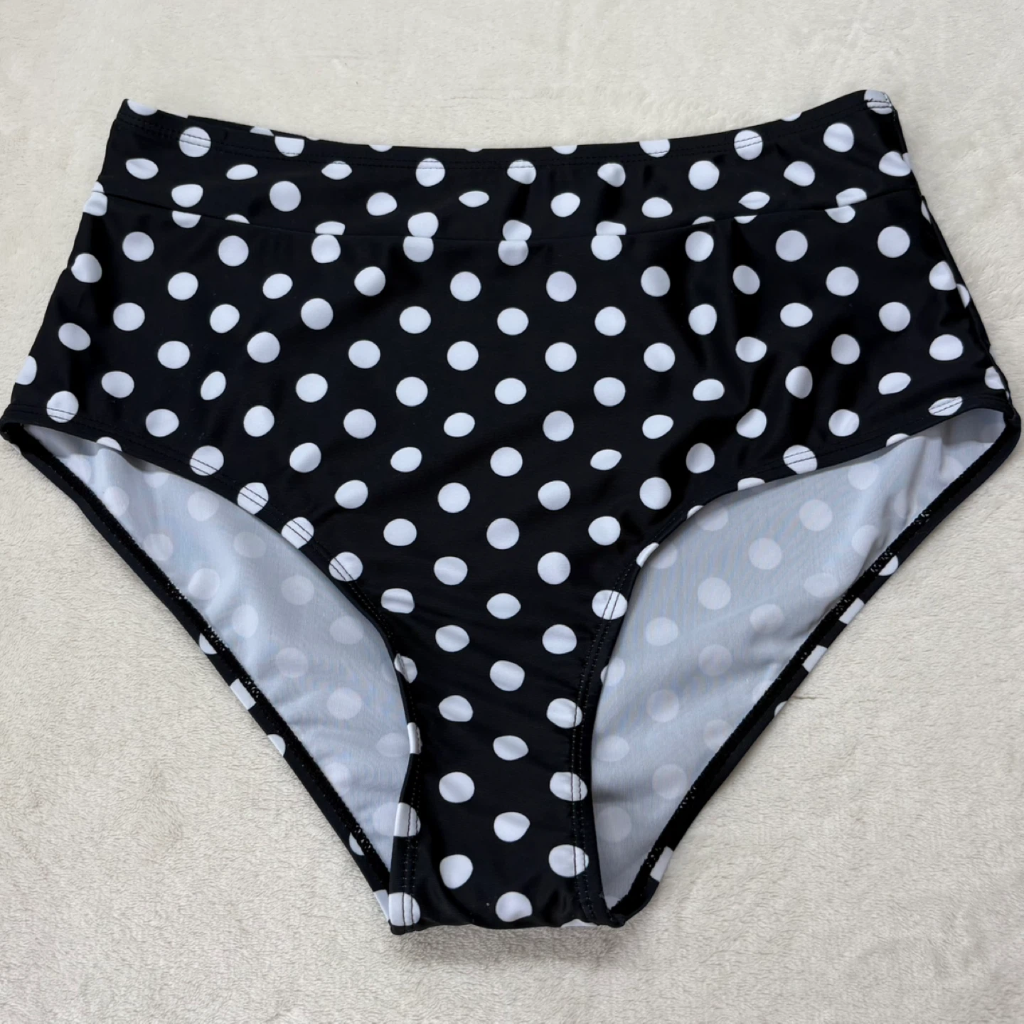Kona Sol, bikini, bottoms, high waist, polka dot, black, white, swim, swimsuit, retro, vintage style, medium