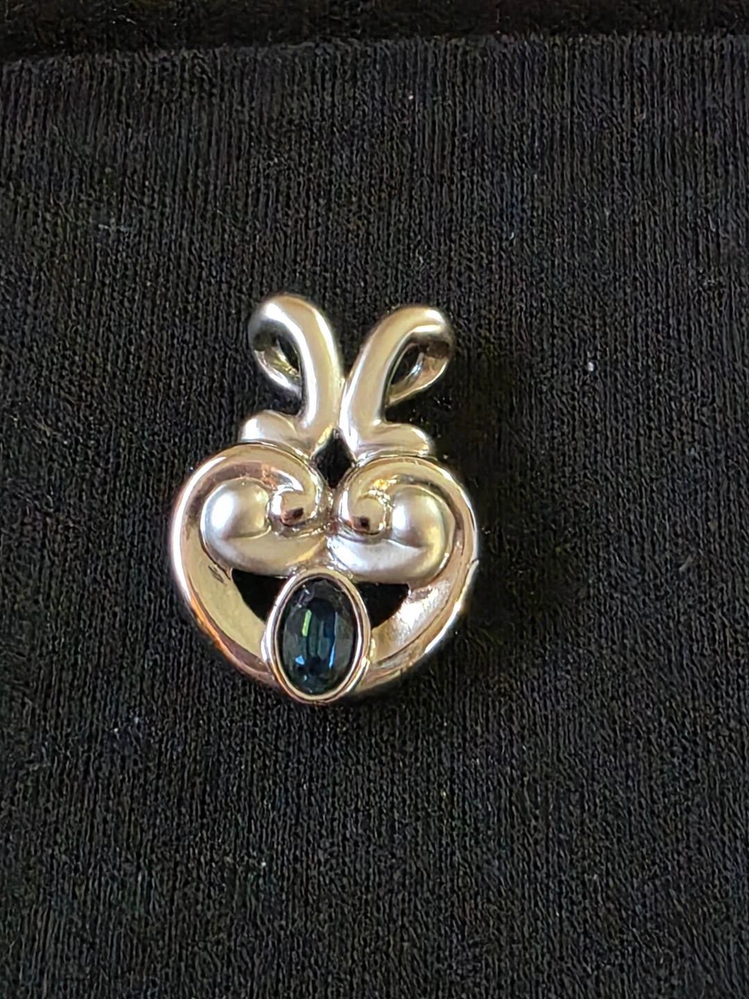 A lovely silver pendant featuring a unique design with a blue stone at the center. It's in great condition and would make a beautiful addition to any jewelry collection. No chain for it.