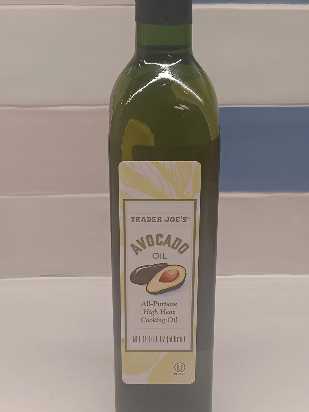 Selling a bottle of Trader Joe's Avocado Oil. It's all-purpose, high heat cooking oil. The bottle contains 16.9 fl oz (500mL). Best by September 14, 2026