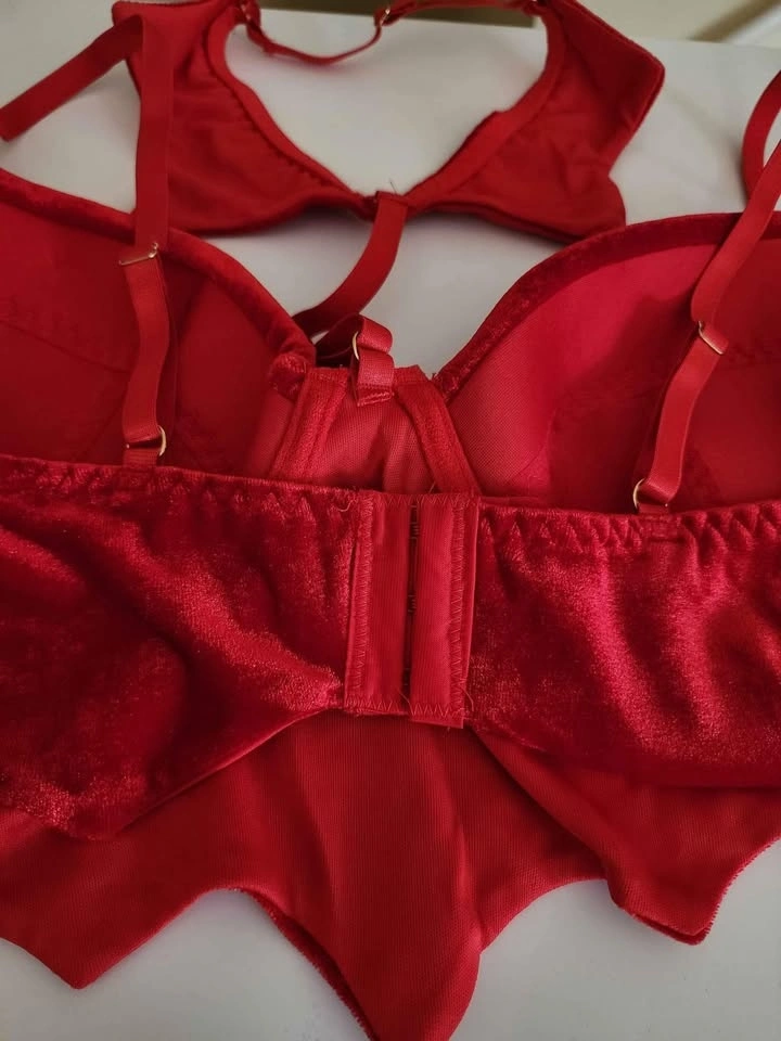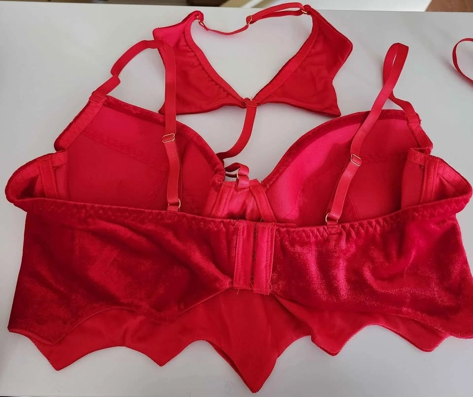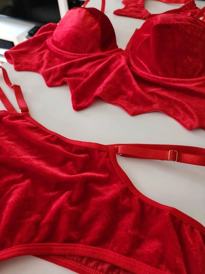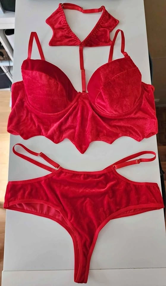 Red Velvet Goth Lingerie Set * Choker * Bra Crop Top * Bat * NEW