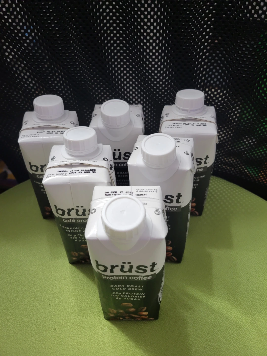 Enjoy a boost with Brüst Dark Roast Protein Coffee! Each serving has 20g of protein and only 100 calories with 0g of sugar. Perfect for a quick and healthy pick-me-up!