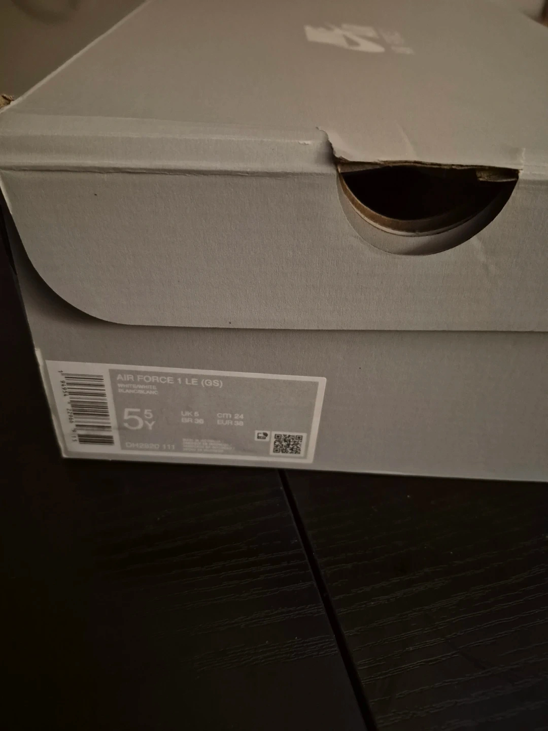 Selling a pair of Nike Air Force 1 LE (GS) shoes in size 5.5 youth! They are white and black and come in the original box