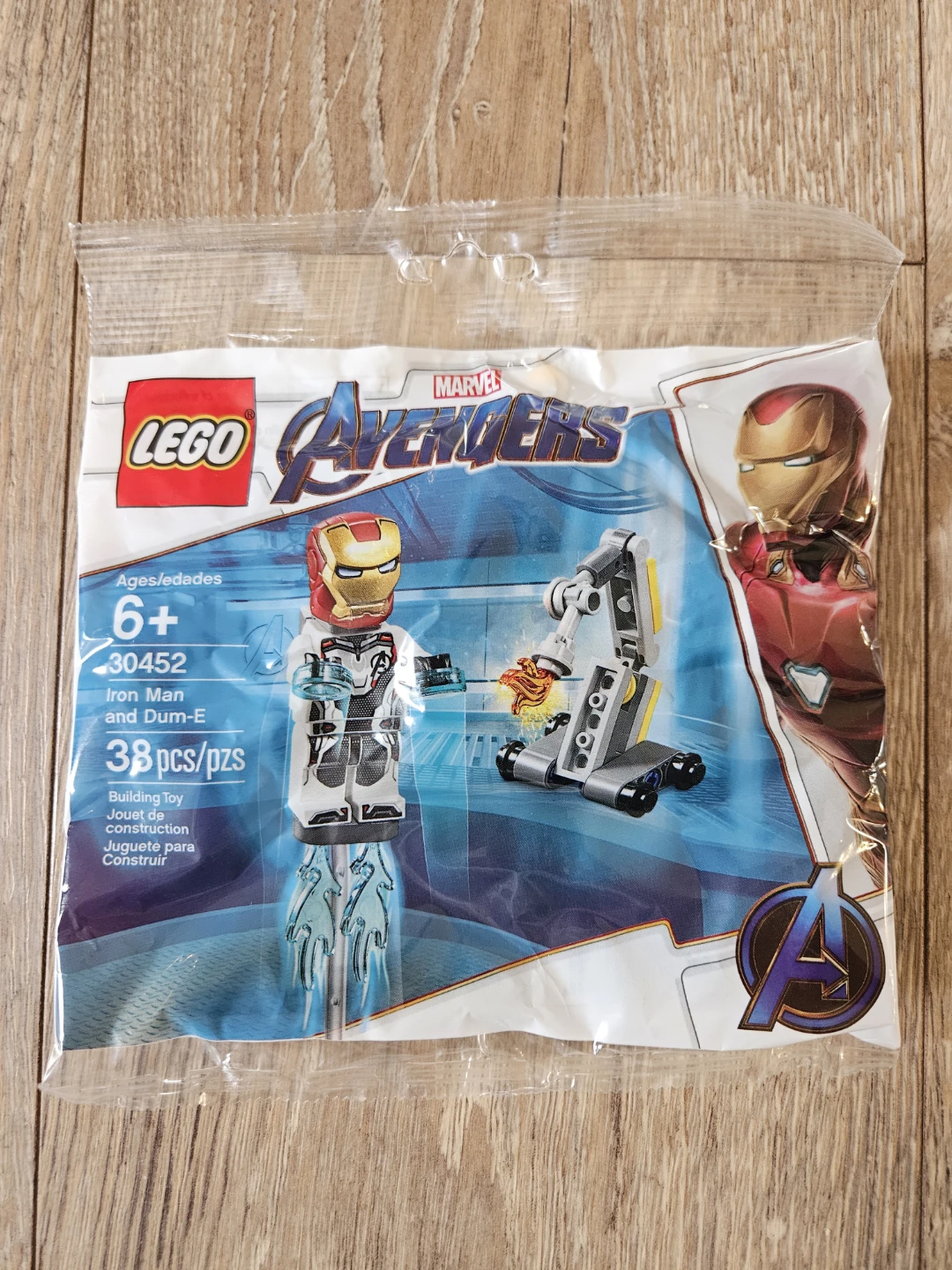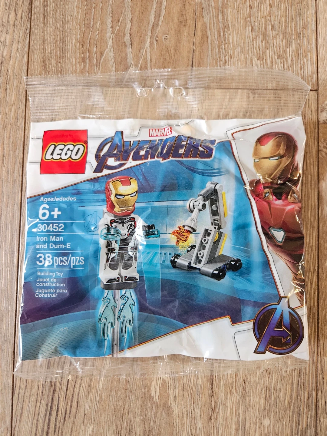 LEGO 30452 Iron Man and Dum-E is a Marvel Super Heroes Avengers: Endgame set released in 2019, containing 38 pieces and 1 minifigure.