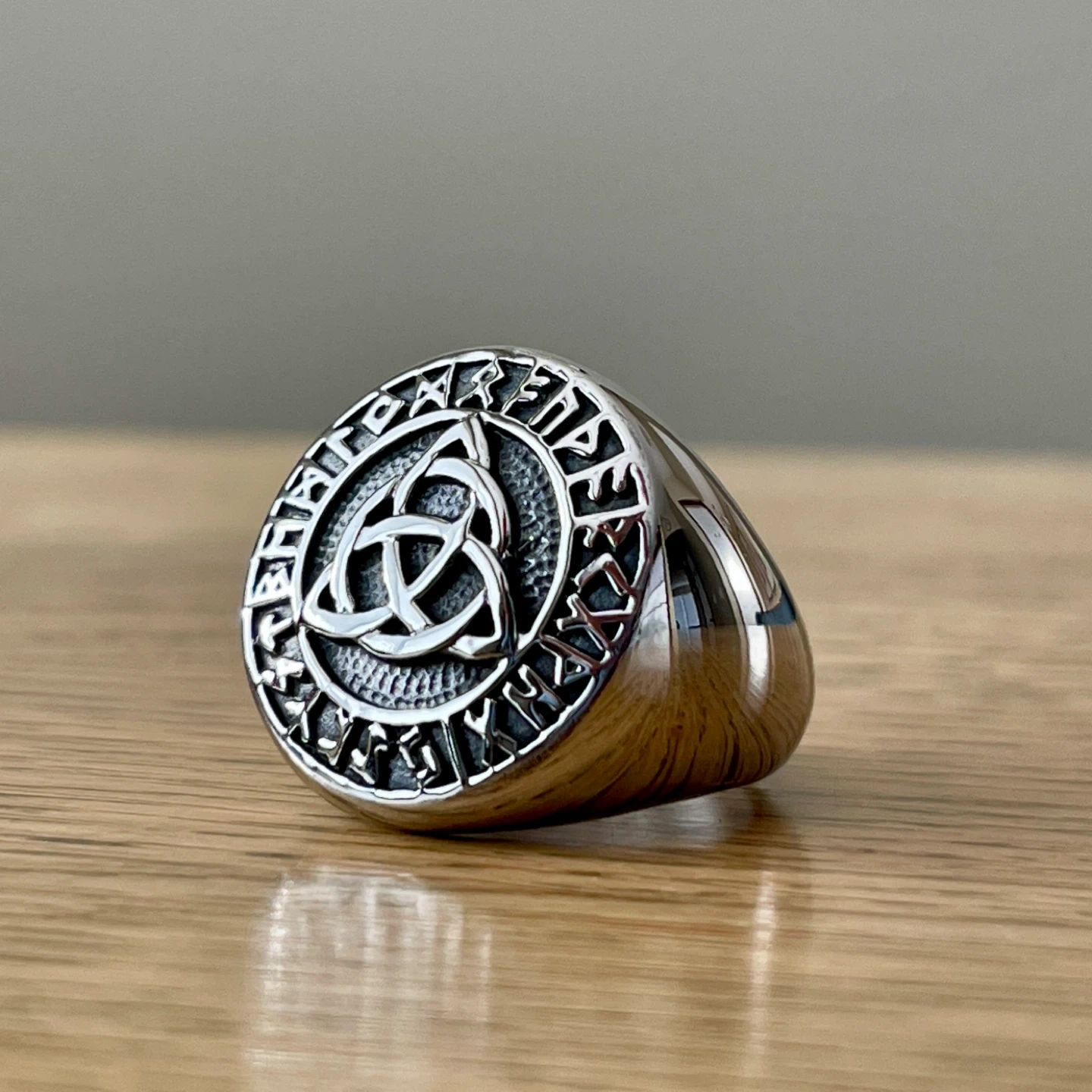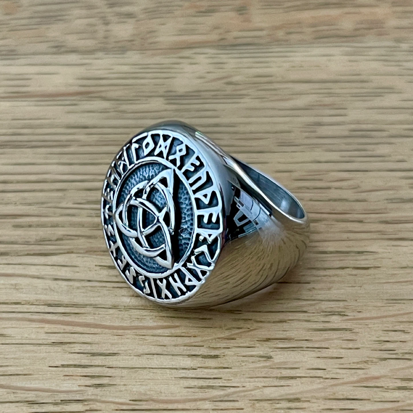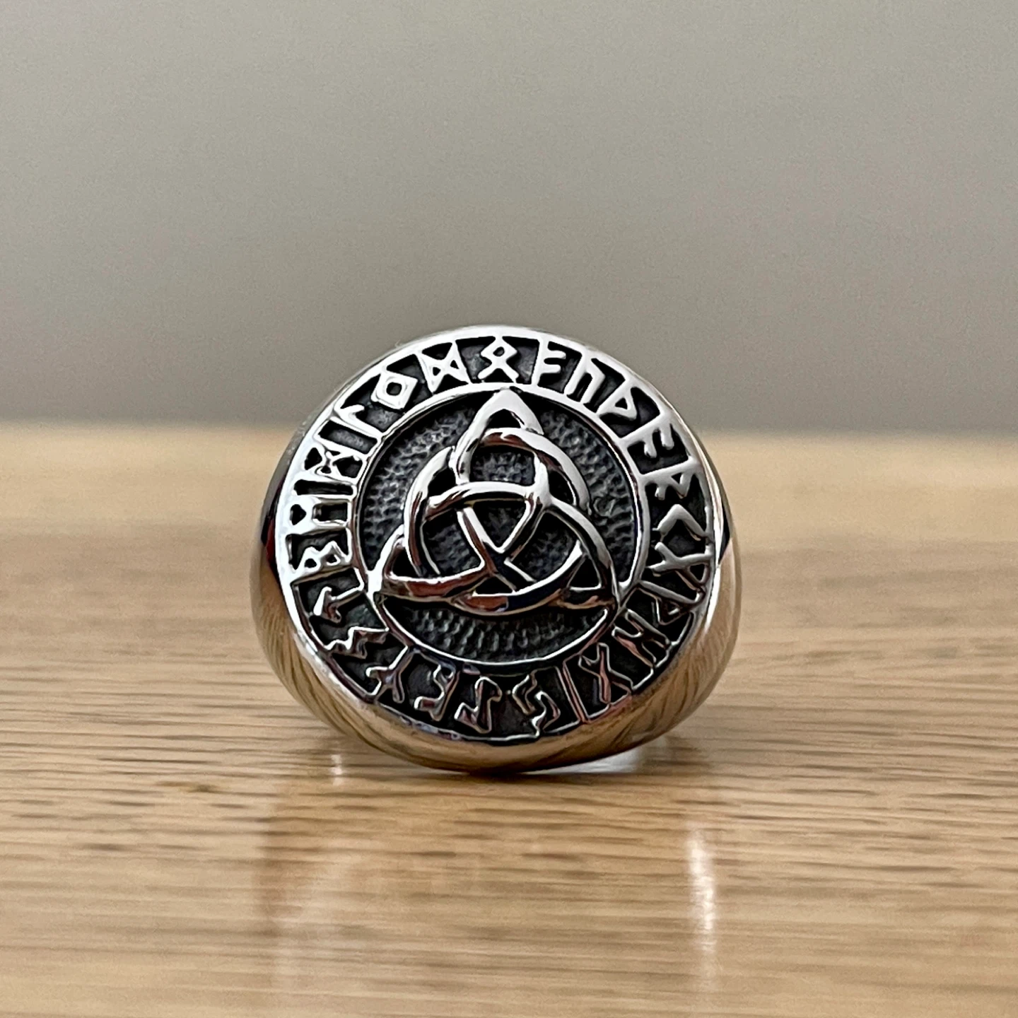 Celtic Trinity love Knot & Runes Stainless Steel ring (size 11)