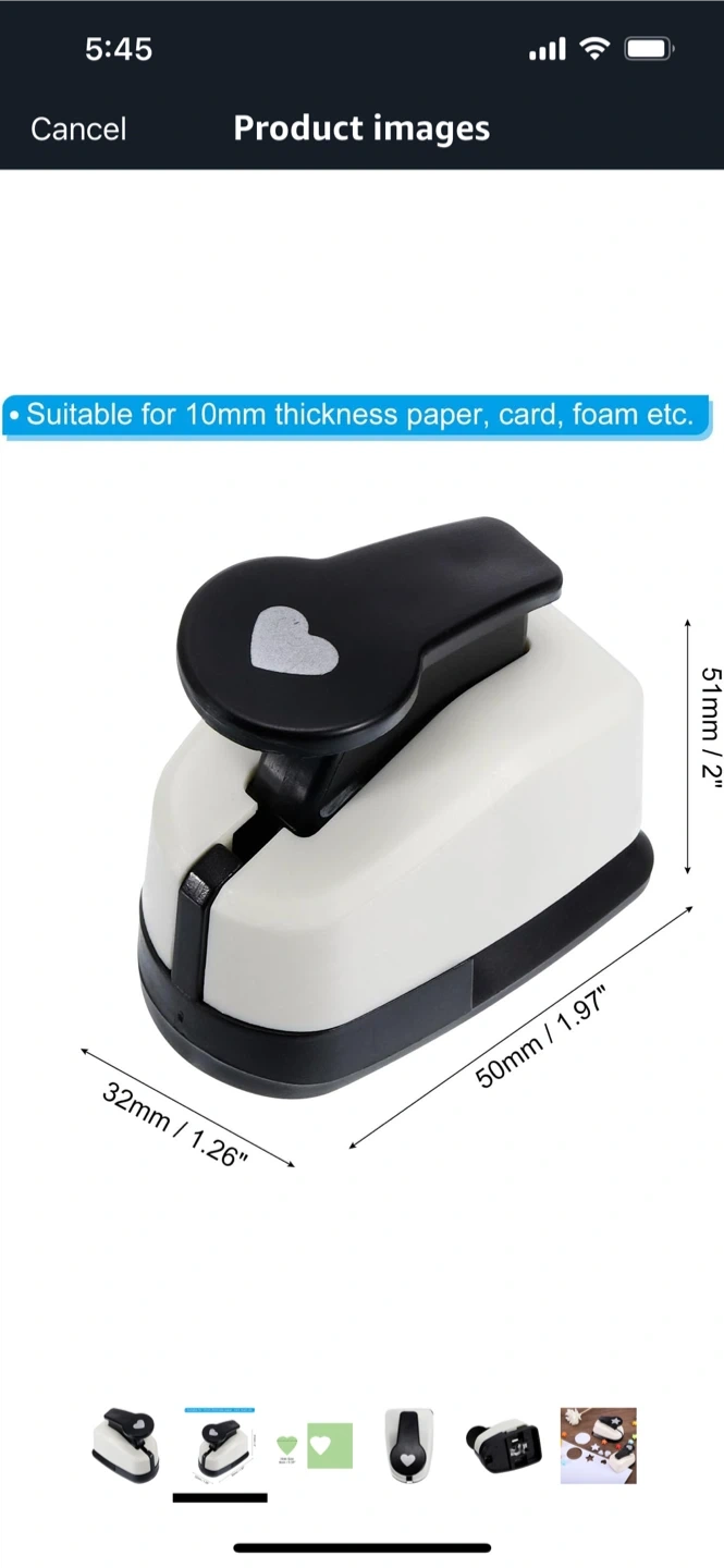 I'm selling a new heart-shaped paper punch! It's in great condition and perfect for crafts and scrapbooking. It's suitable for 10mm thickness paper, card, and foam. Dimensions are approximately 50mm x 32mm x 51mm! Pick up at Islington /401 / bergamot avenue Etobicoke.