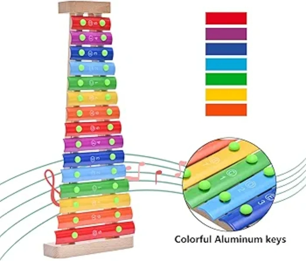 Selling a LIEKE 15 Tone Wooden Xylophone Chimes Musical Instrument! It features colorful aluminum keys and comes with the mallets. This is a great musical instrument gift for kids and adults alike