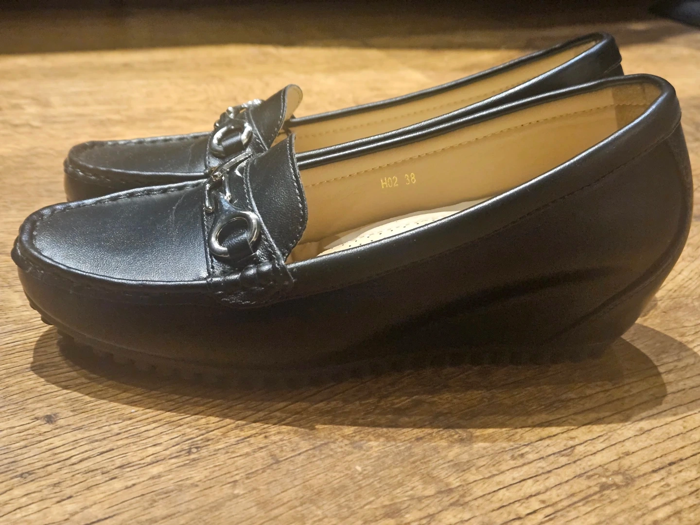 Women's Black Leather Wedge Loafer- Size 8 🥕