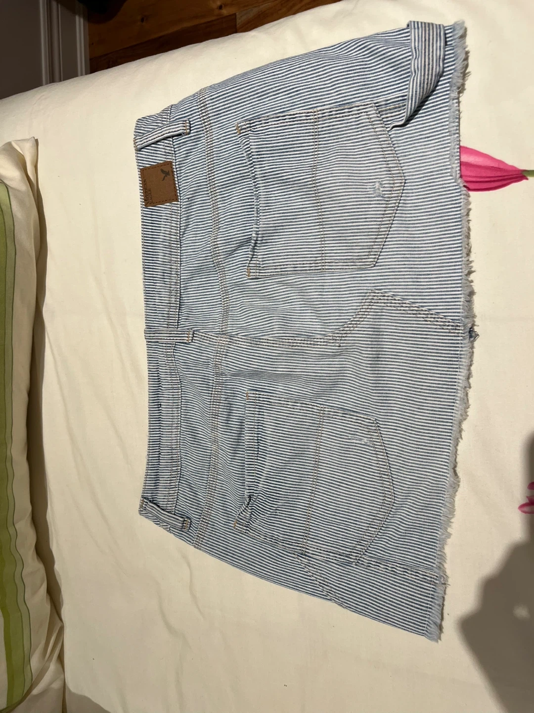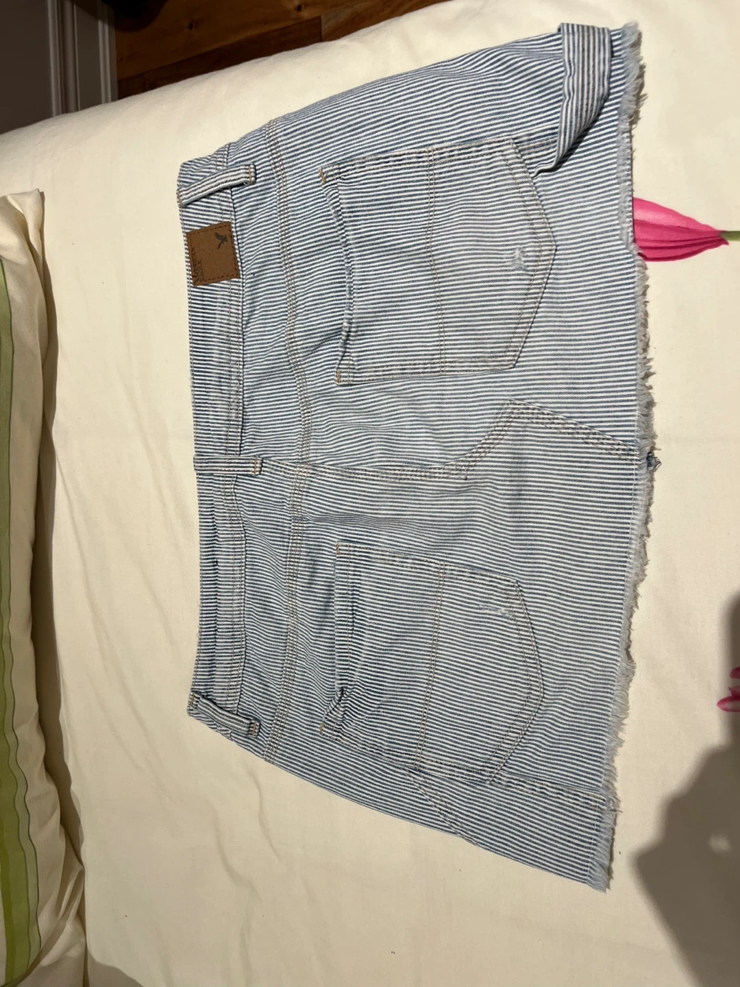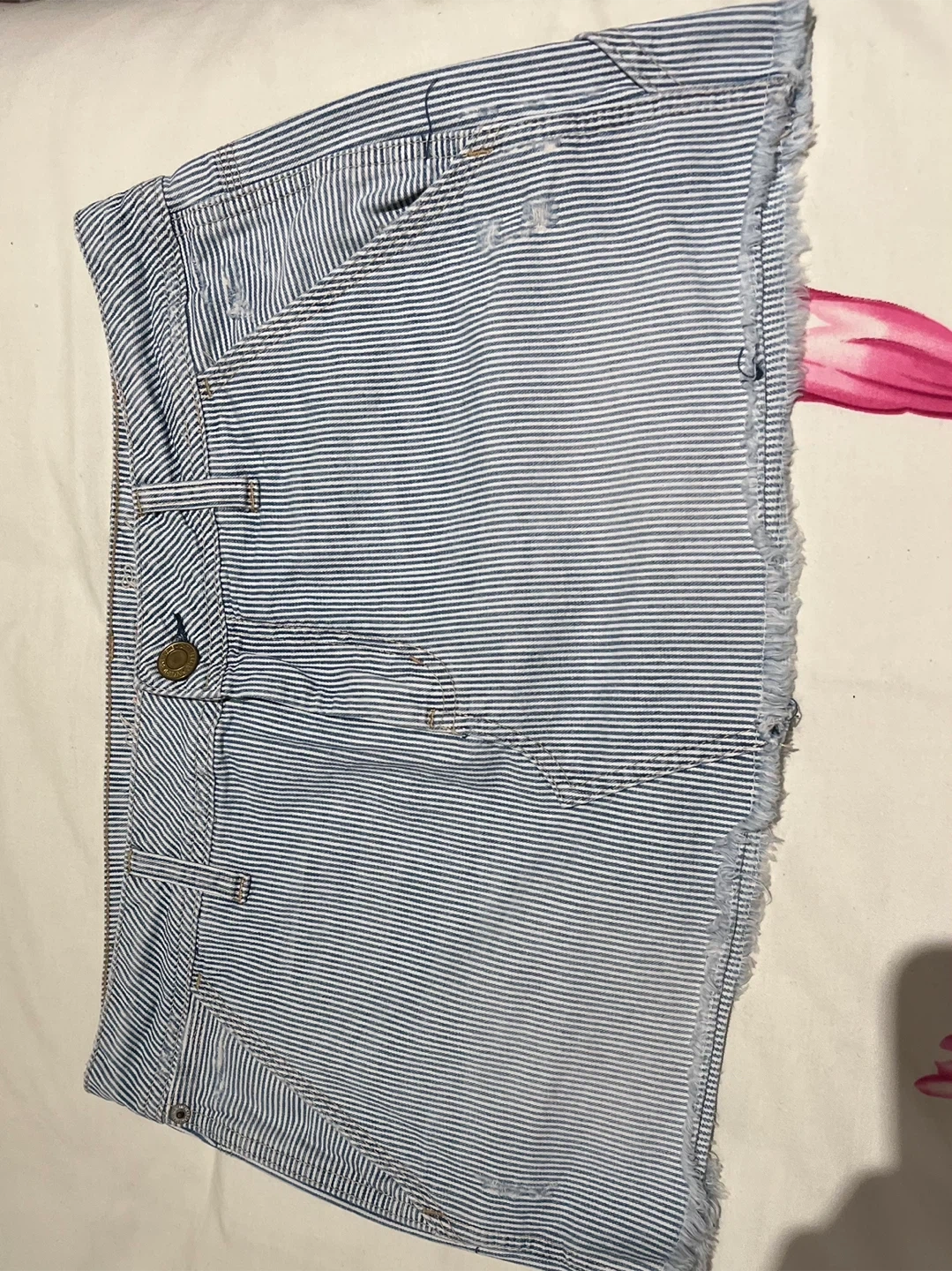 Selling an American Eagle denim skirt in a cute striped pattern! It's a size 6 and made of denim so it's comfy and easy to care for. Perfect for a casual, summery look! Going on vacation