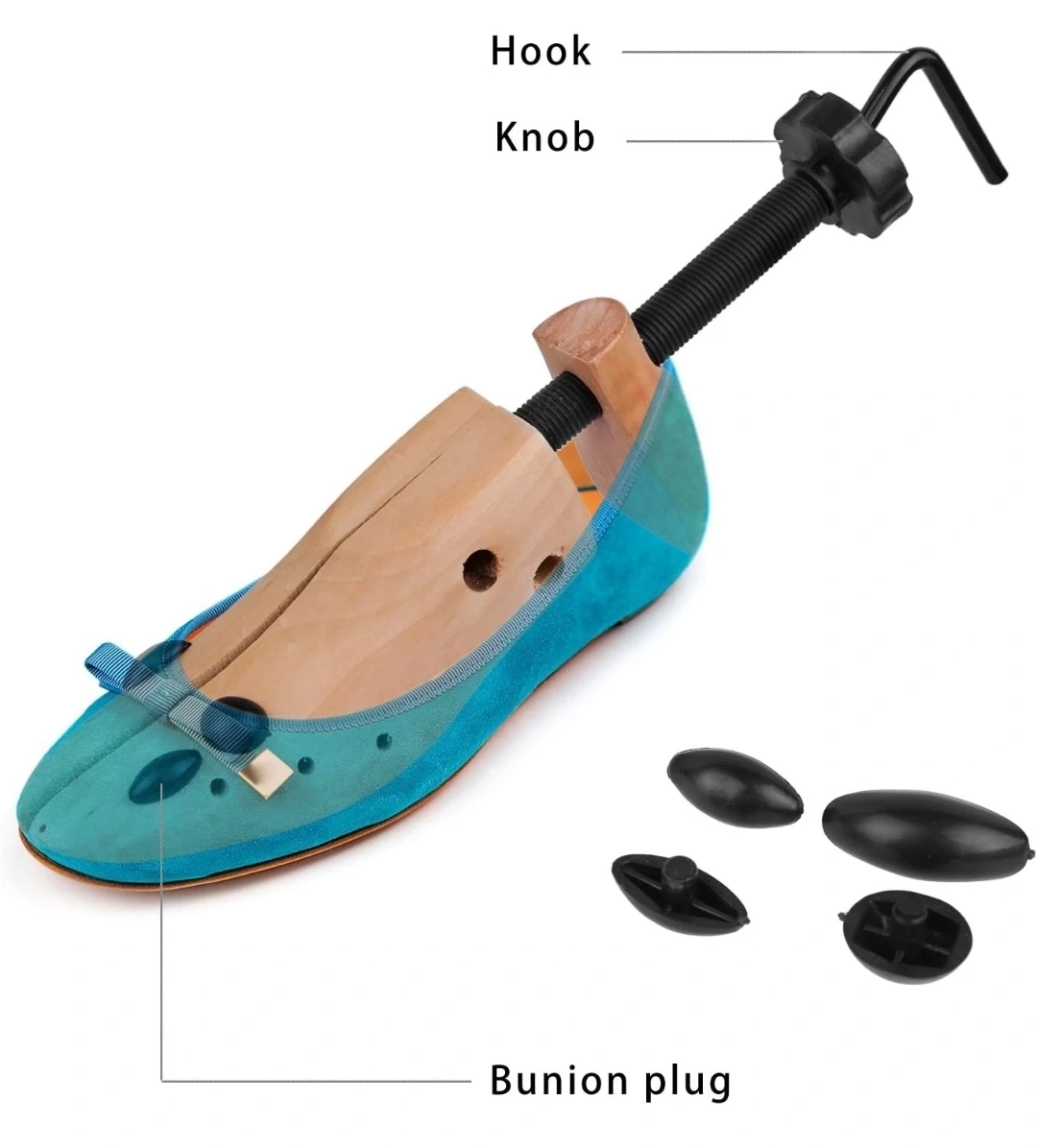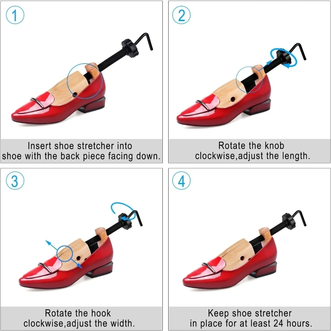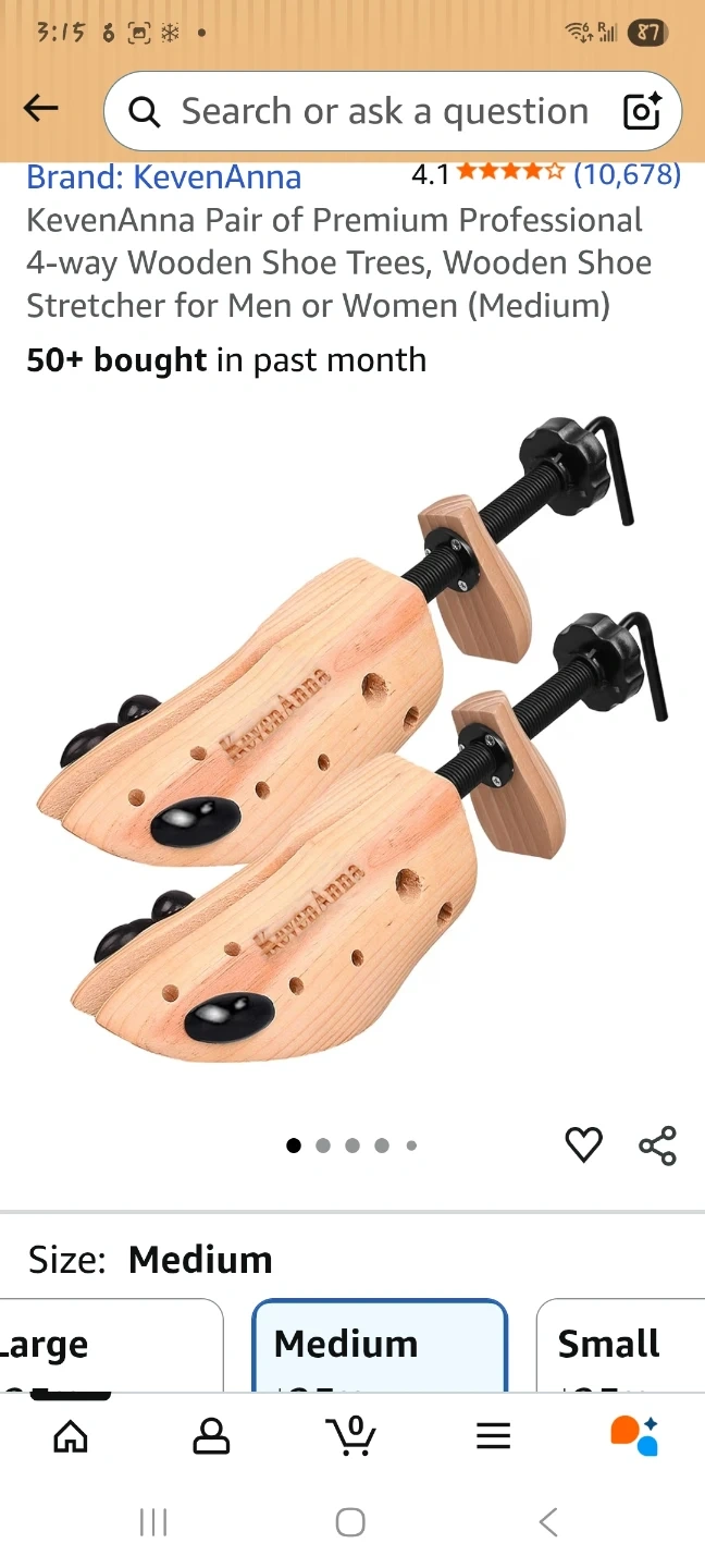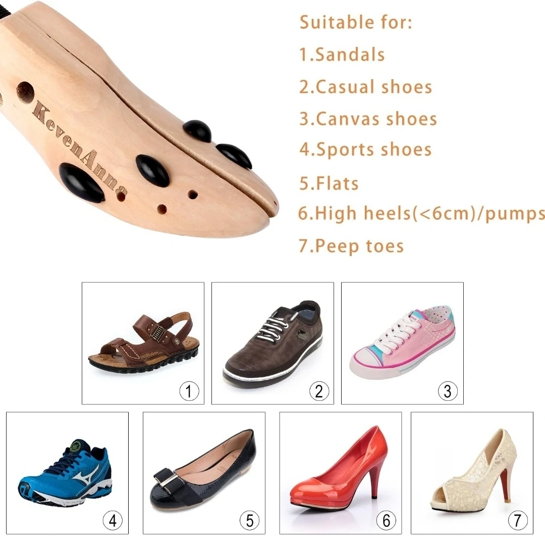 I'm selling a KevenAnna shoe stretcher. It's a medium size and made of wood. It also comes with a packet of 4 bunion/corn plugs per stretcher.