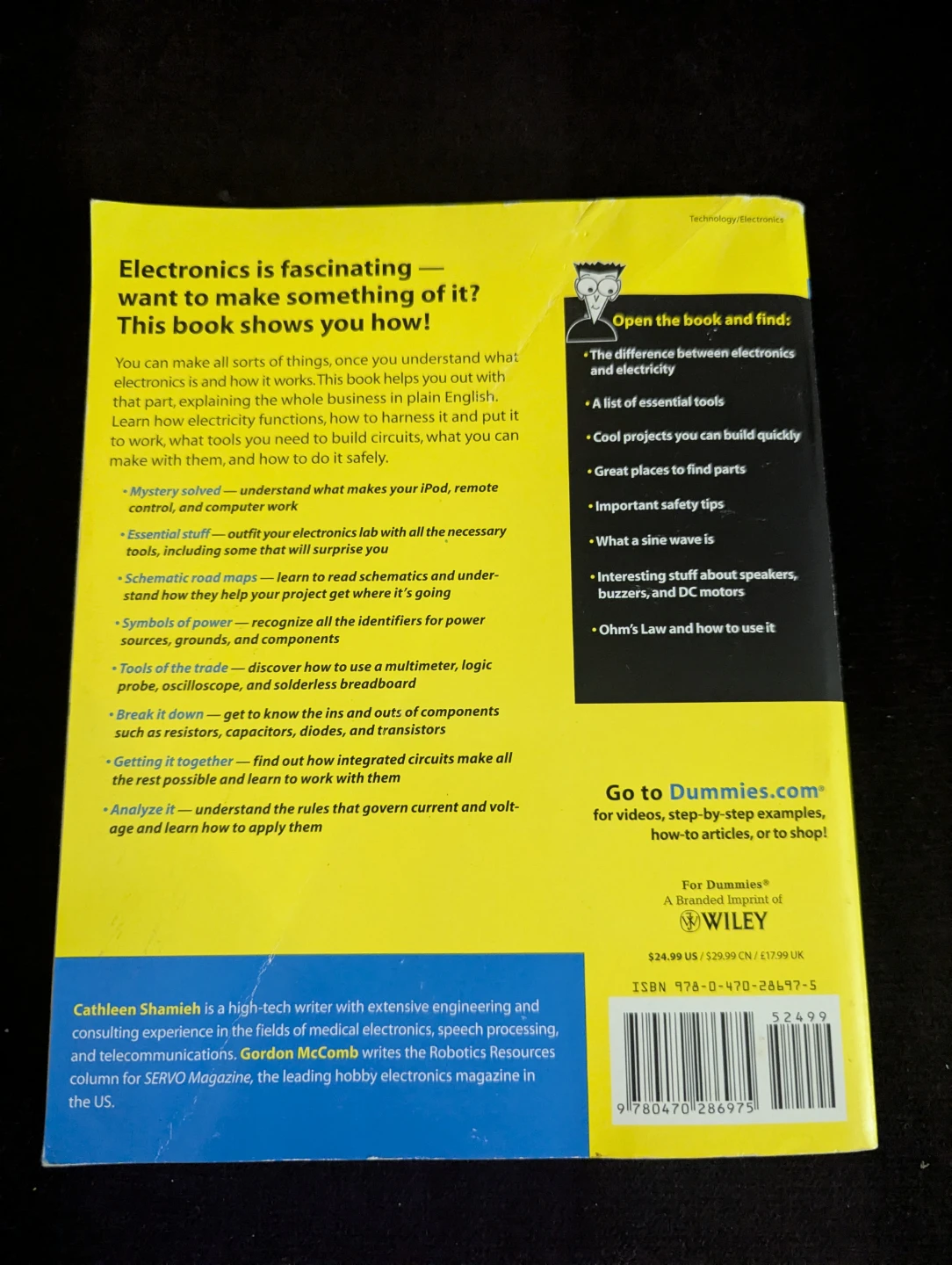 Selling "Electronics for Dummies", 2nd Edition. This book is great for understanding the basics of electronics and how things work. Learn how to build circuits and understand tools like multimeters and oscilloscopes.