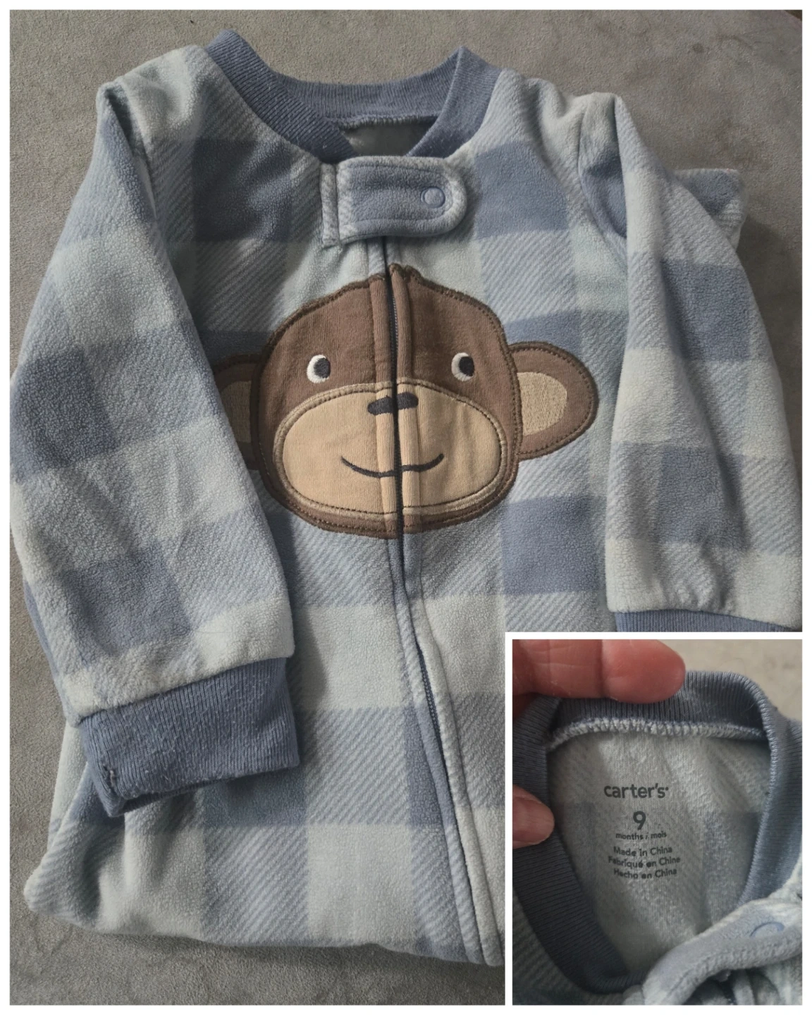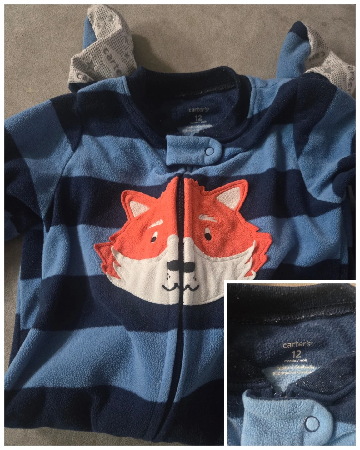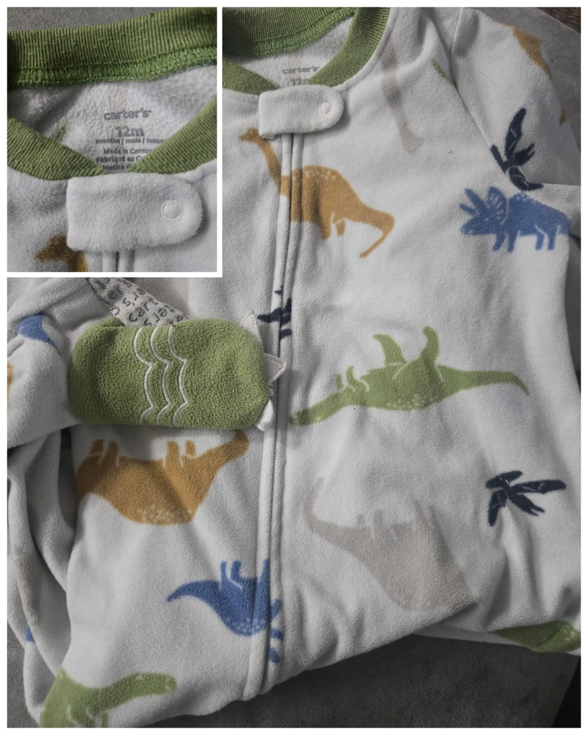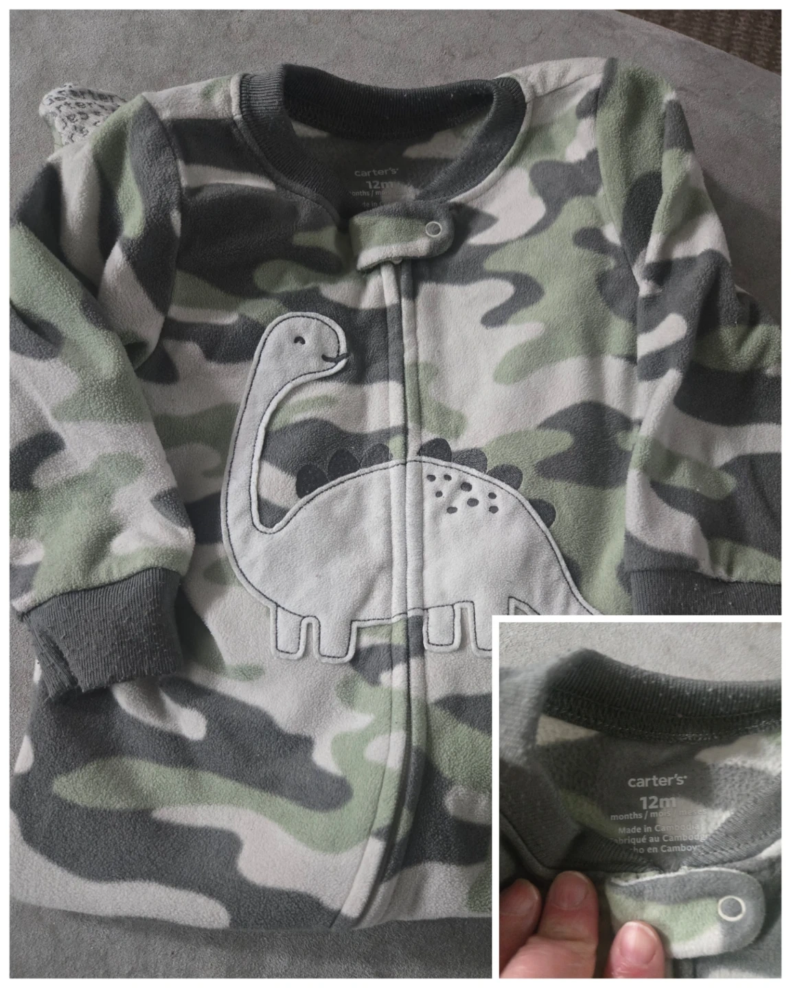 Selling a bundle of Carter's baby sleepers in sizes ranging from 6-12 months! They feature cute designs like foxes, dinosaurs, monkeys, and camo patterns. Perfect for keeping your little one cozy!