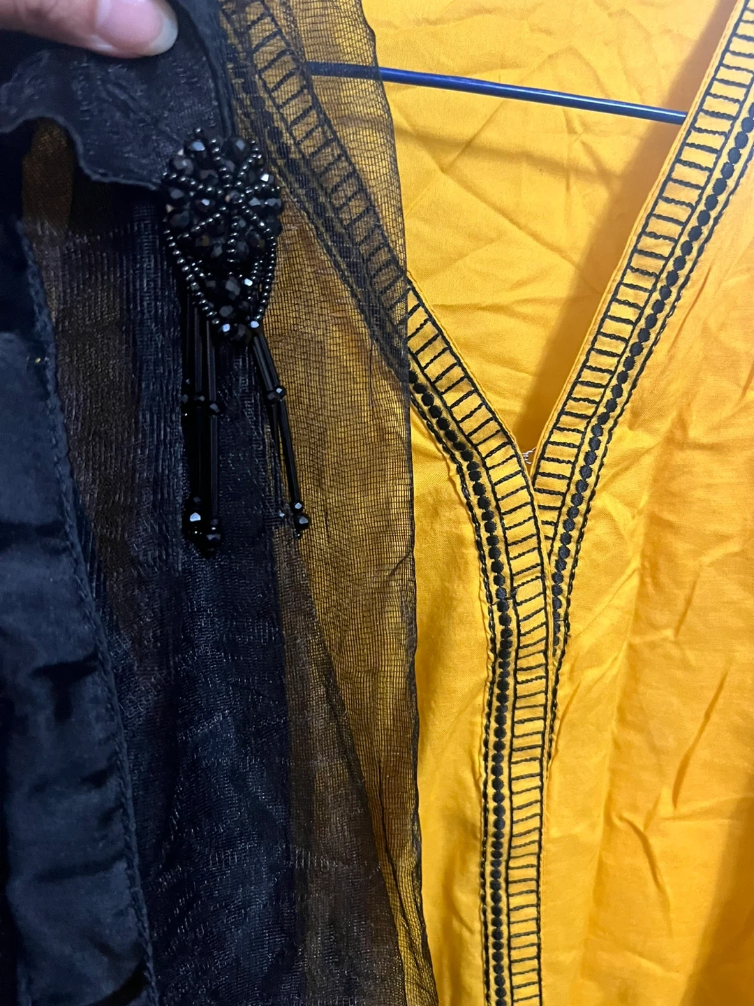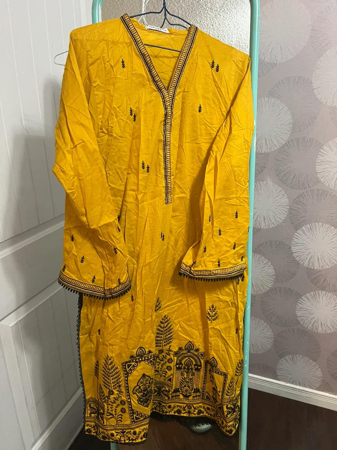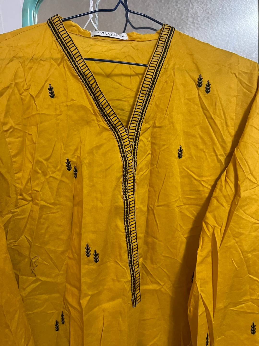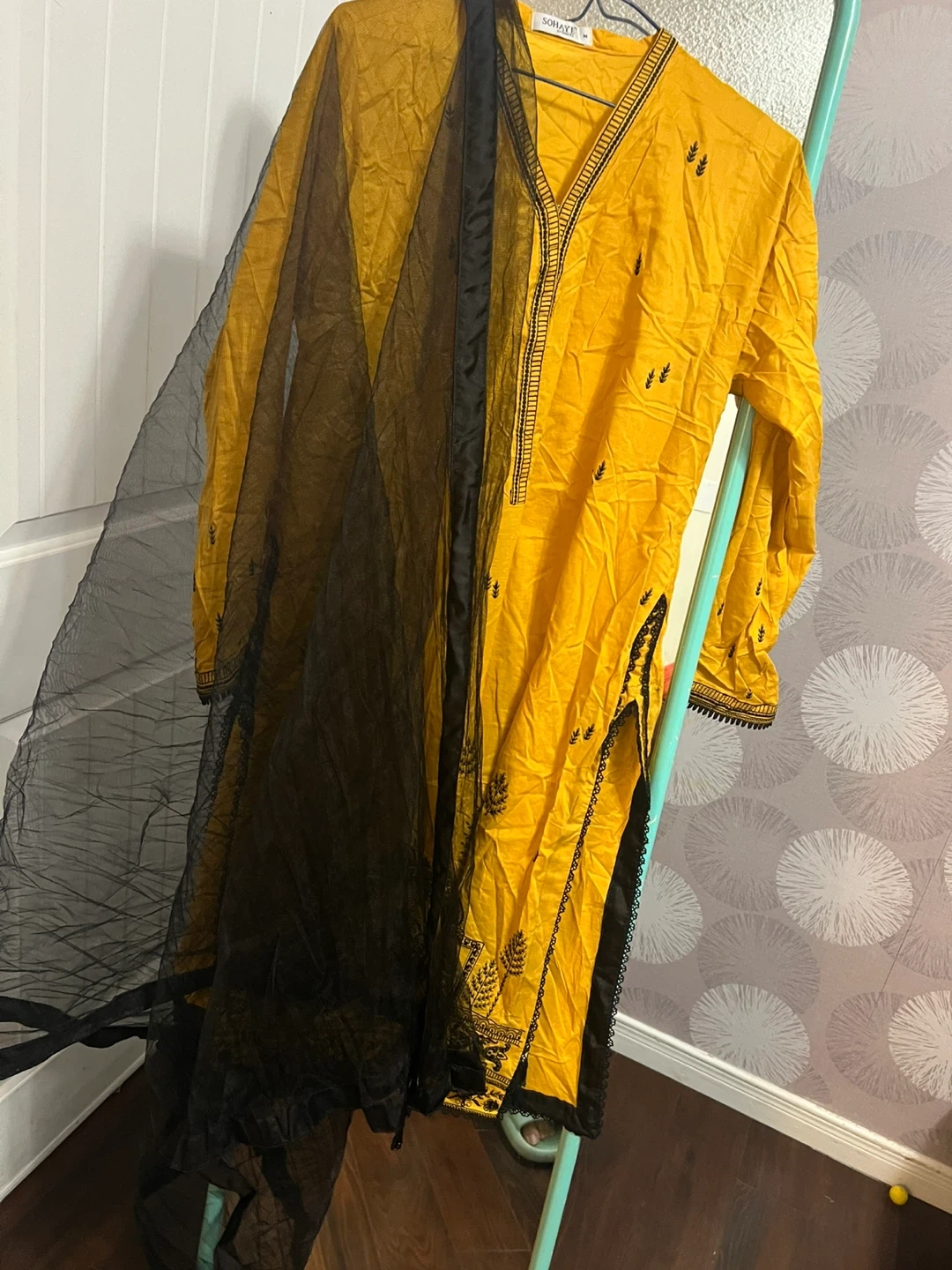 3 piece Selling a beautiful Somaya salwar kameez in yellow and black! This traditional outfit is perfect for any special occasion. The intricate detailing and vibrant colours make it a standout piece. The set includes the kameez (top), salwar (pants), and dupatta (scarf).