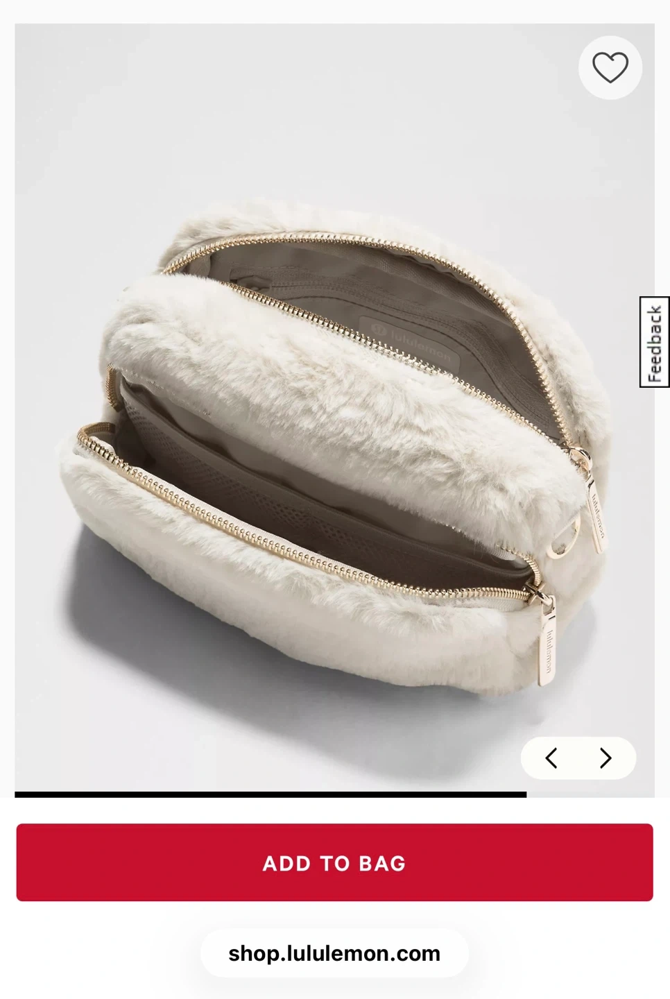 Selling a brand new Lululemon Everywhere Belt Bag in the Plush Fleece version! It's in the colour Natural Ivory/Gold and is one size. This bag is super soft and cozy, perfect for the colder months. It's still in its original packaging!