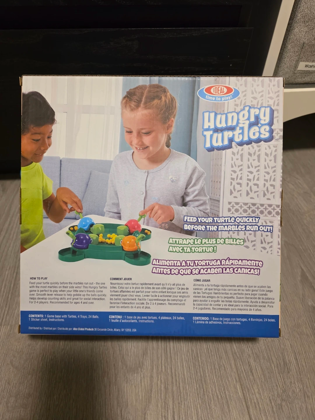 Brand new, giftable No smoking No pet house Pick up near No. 4 and Blundell Road Selling a new Hungry Turtles game! It's perfect for kids ages 4 and up and suitable for 2-4 players. The game includes: - 1 game base with turtles - 4 trays - 24 balls - Sticker sheet Feed your turtle quickly before the marbles run out!