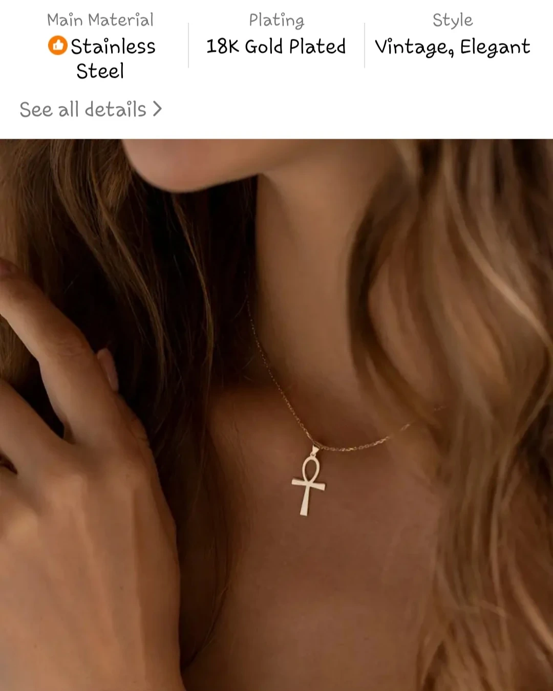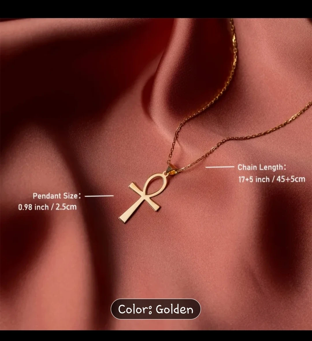 This is a beautiful golden Ankh cross necklace.✨️📿