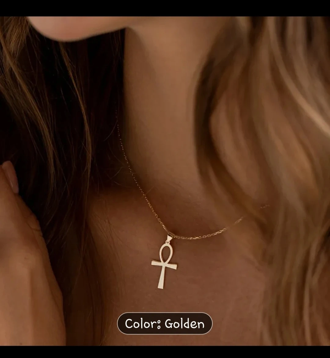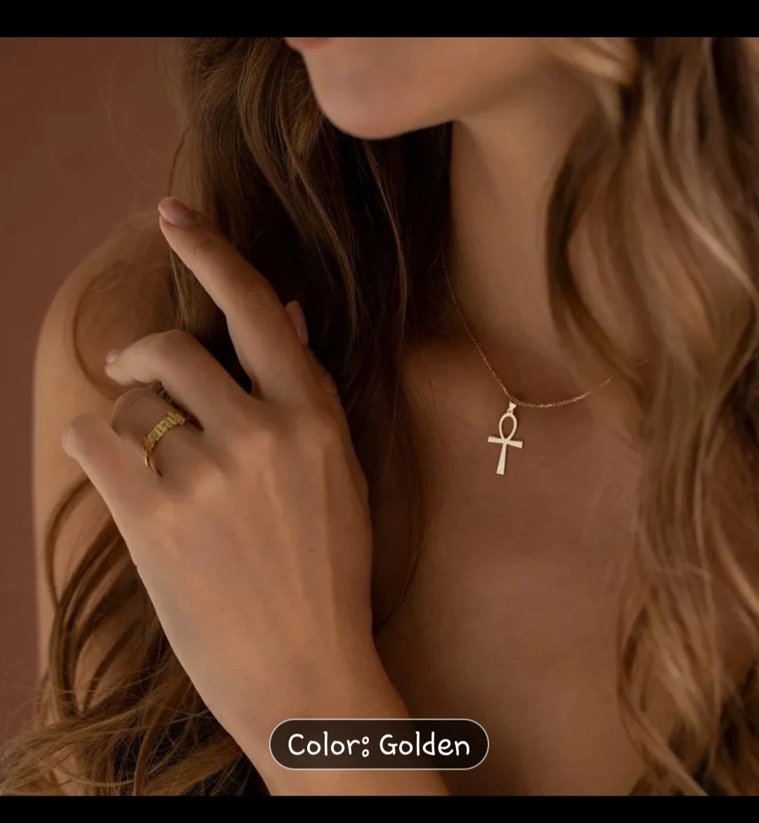 Golden Ankh Cross Necklace - Stainless Steel✨️📿