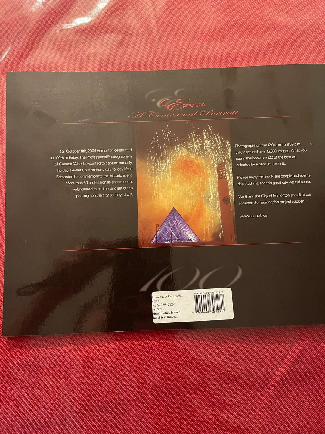 Selling a book titled "Edmonton: A Centennial Portrait". It captures Edmonton's 100th birthday with photographs from professionals. The book features images of the city as seen by 60 professionals. Softcover. Cash only