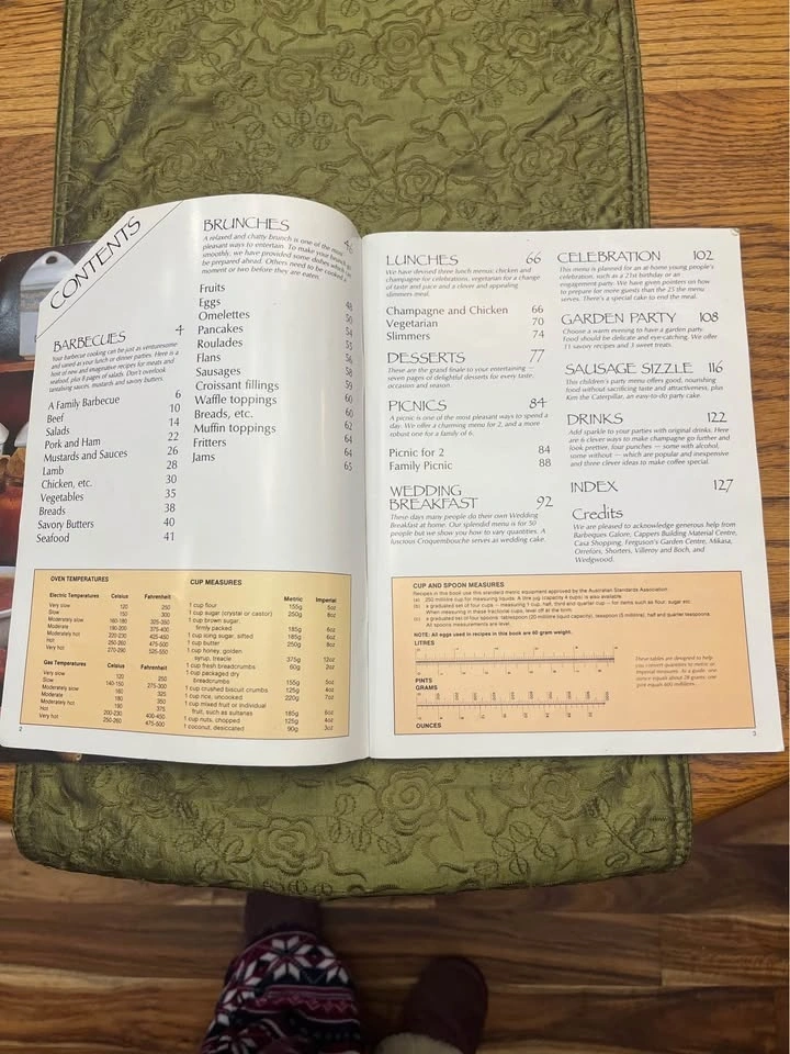 Vintage BBQ Cookbook | Brunches • Lunches • Parties • Picnics Gorgeous full-colour cookbook packed with classic Australian Women’s Weekly recipes. Includes barbecues, brunch menus, lunches, desserts, picnics, and even a wedding breakfast section. Condition: Good vintage condition — clean pages, light cover wear. ⭐ Features • 120+ pages of recipes • Beautiful full-colour photographs • BBQ meats, seafood, salads & sauces • Brunch ideas, omelettes, pancakes & more • Picnic menus, garden party spreads, and celebration dishes Perfect for collectors, cooks, and anyone who loves AWW vintage cookbooks. 📍 Pickup Instructions South Clearbrook area — near Red Apple Store & Family Pizza. Won’t respond to “Is this available?” Please PM with same-day pickup ETA to hold. Bring exact cash only. All sales are final.