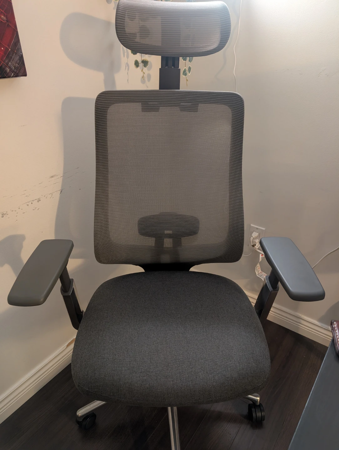 It's in great condition and ready for a new workspace or home office. The chair features a mesh back for breathability and adjustable armrests for comfort. Perfect for long hours of work or study