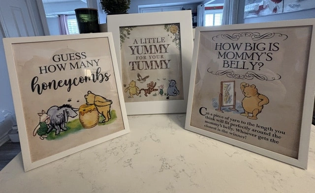 • 2 printed 8×10 shower game signs
