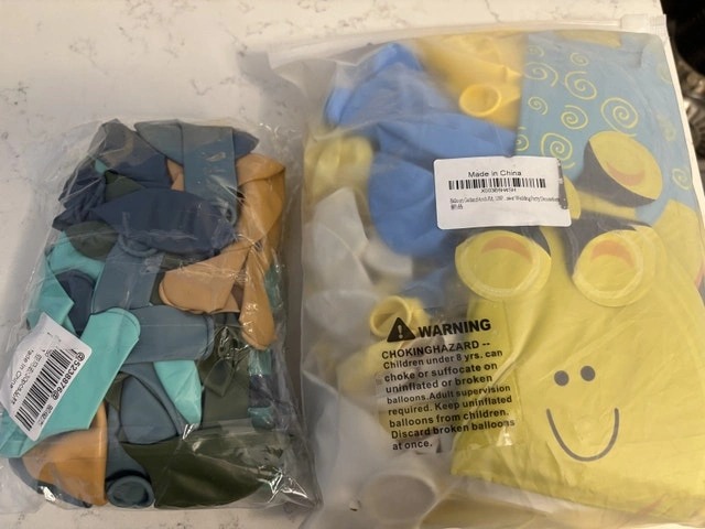 • 189 assorted balloons (yellow, pale yellow, white, cream, light/dark green, light/dark blue)