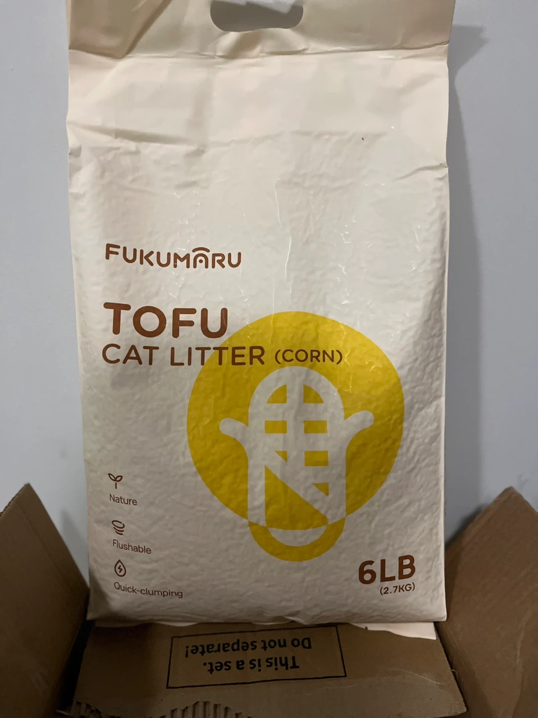 I have Fukumaru Tofu Cat Litter (Corn) for sale. The bag is 6LB x 3EA and it's quick-clumping and flushable. It's nature-friendly too!
