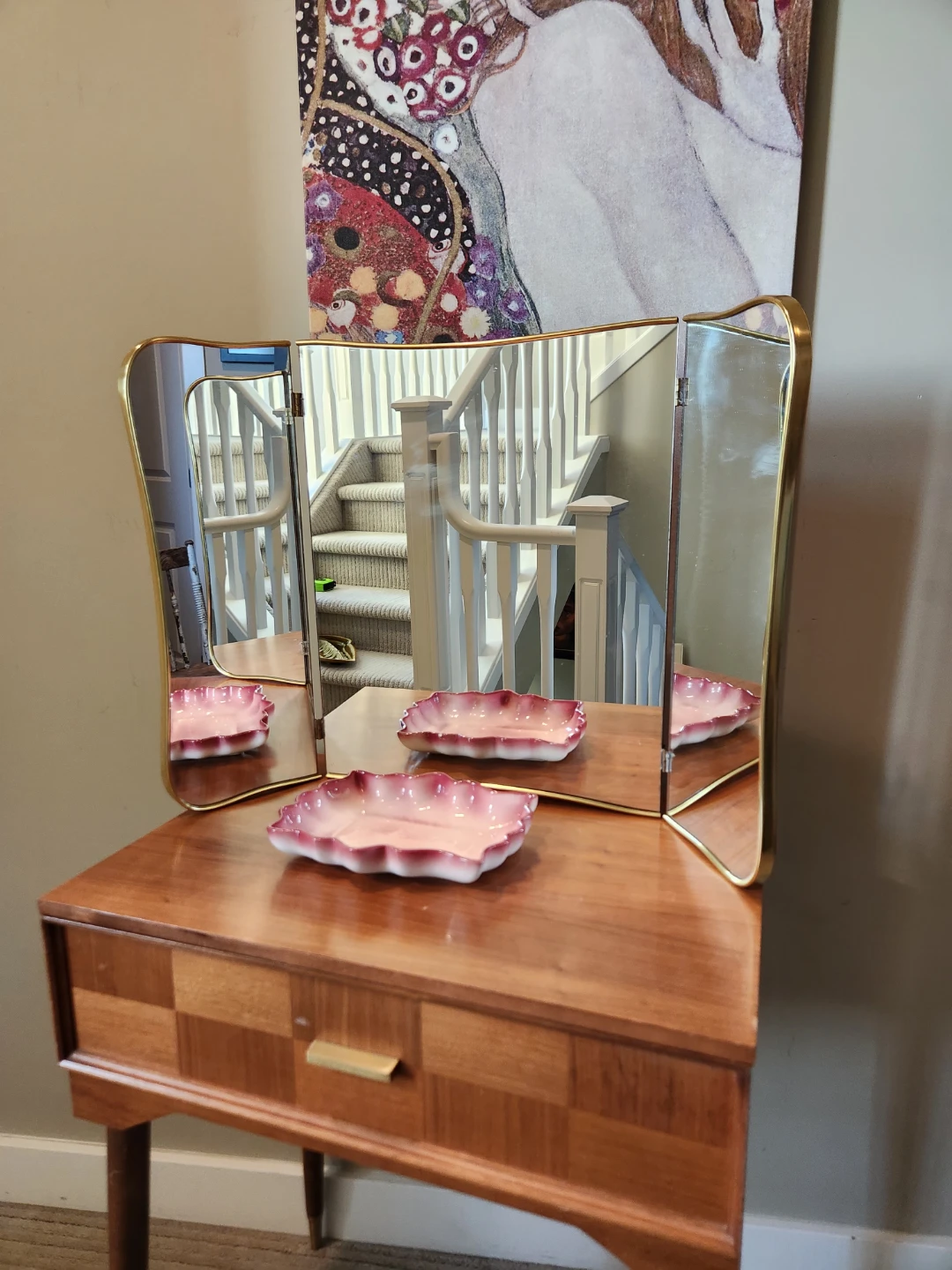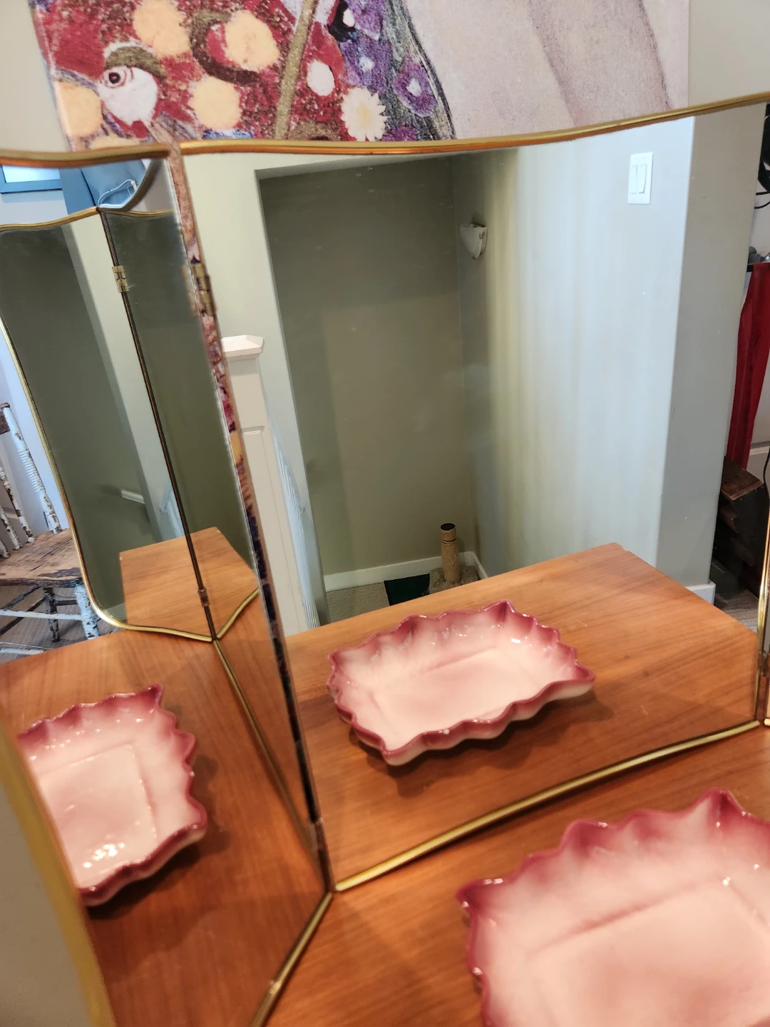 RARE Tri-Fold 1940's Vanity Mirror, free standing OR wall mount.