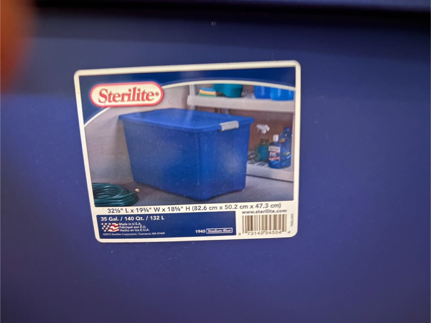 π₯ 2 Sterilite 35gallon/132L size Storage Boxes - Blue
