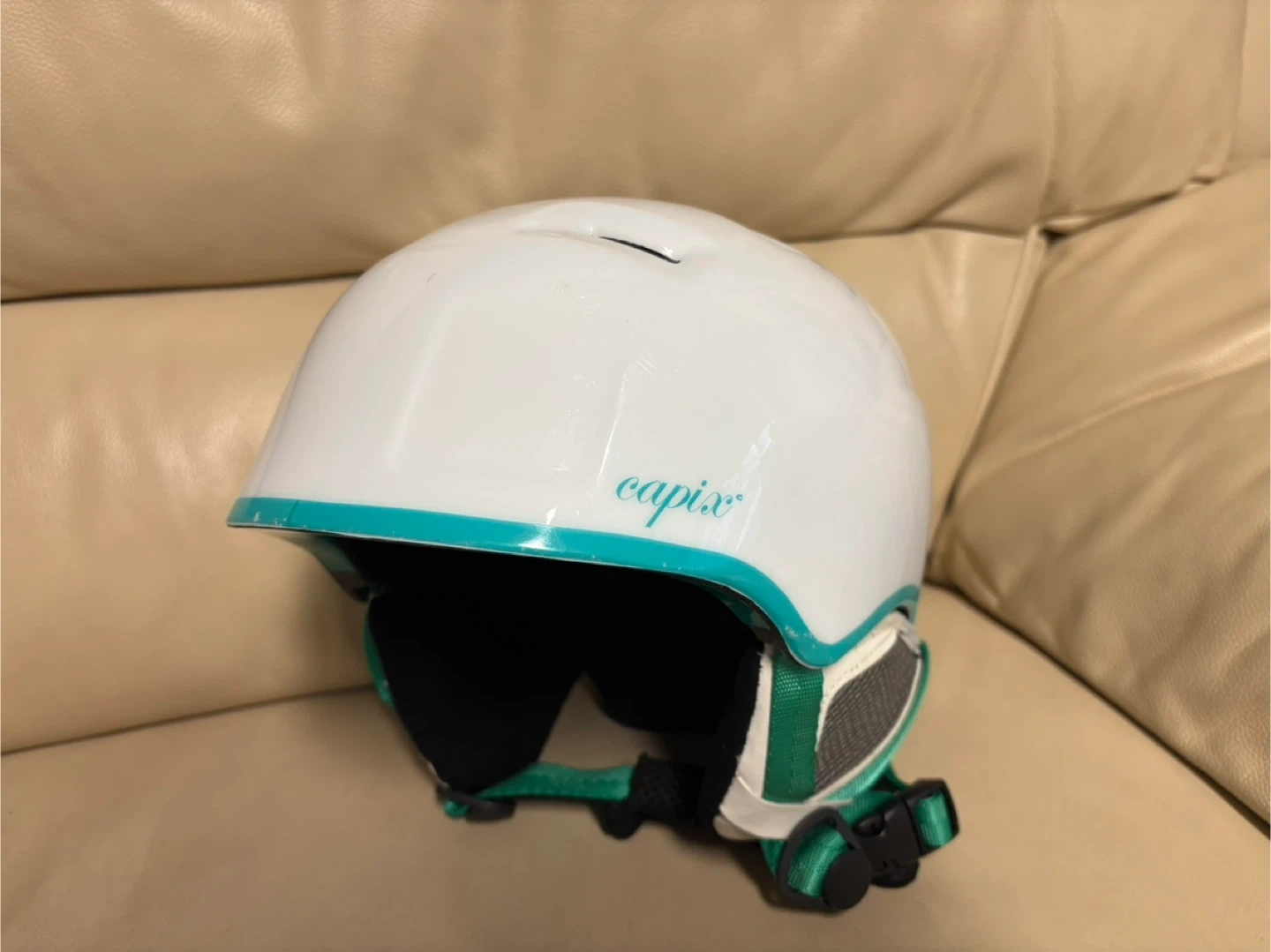 Selling a Capix ski and snowboard helmet in great condition! It's a stylish white with turquoise accents. Perfect for hitting the slopes this winter!