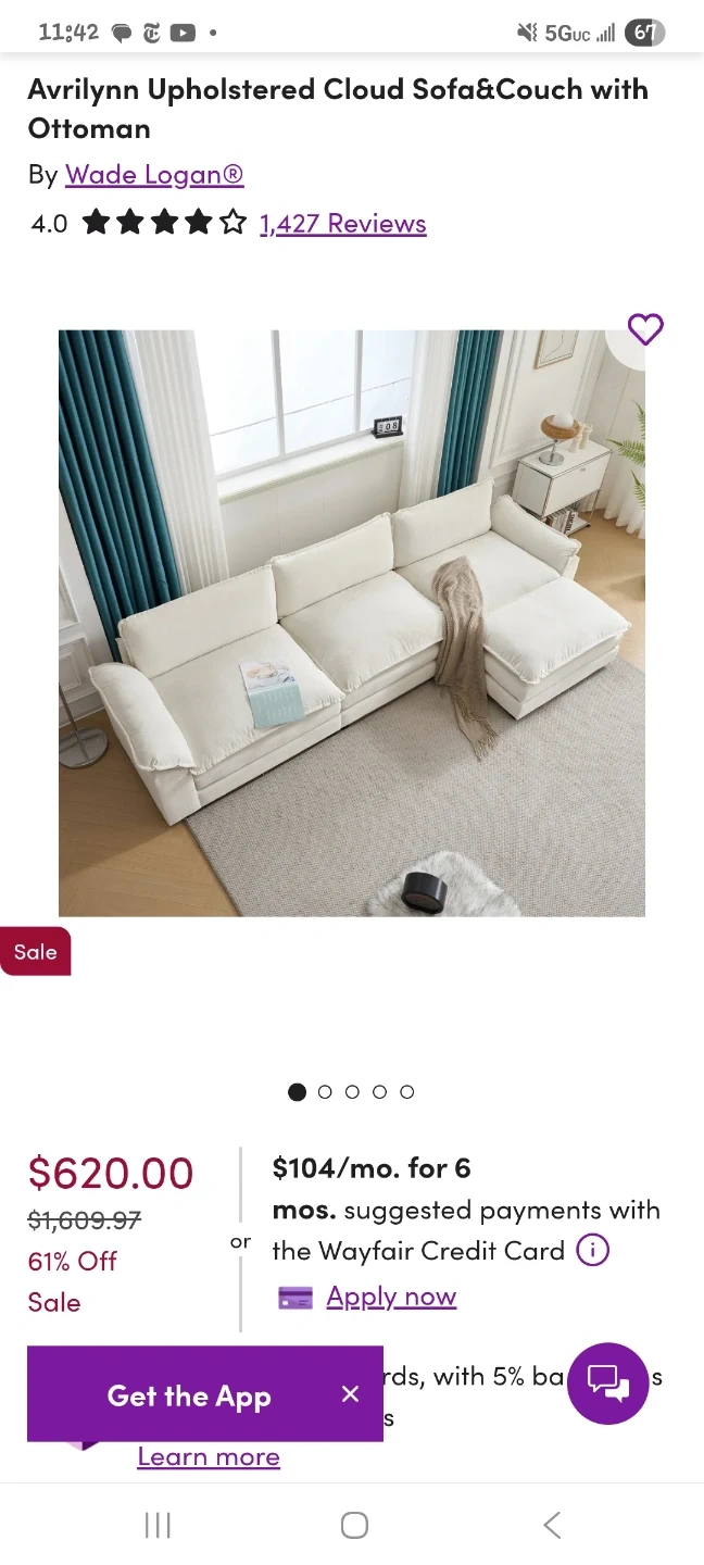 Selling a comfortable and stylish Avrilynn Upholstered Cloud Sofa & Couch with Ottoman.