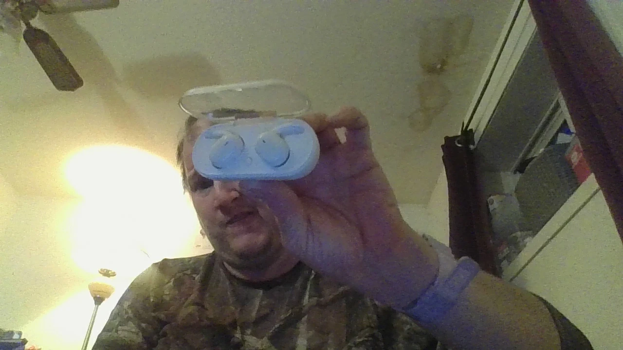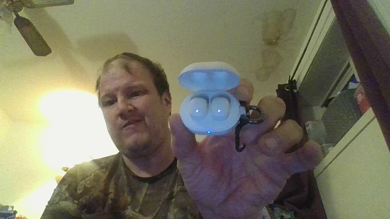 Wireless earbuds with a charging case. They come in a variety of colours, including white and black. Great for listening to music or podcasts on the go!