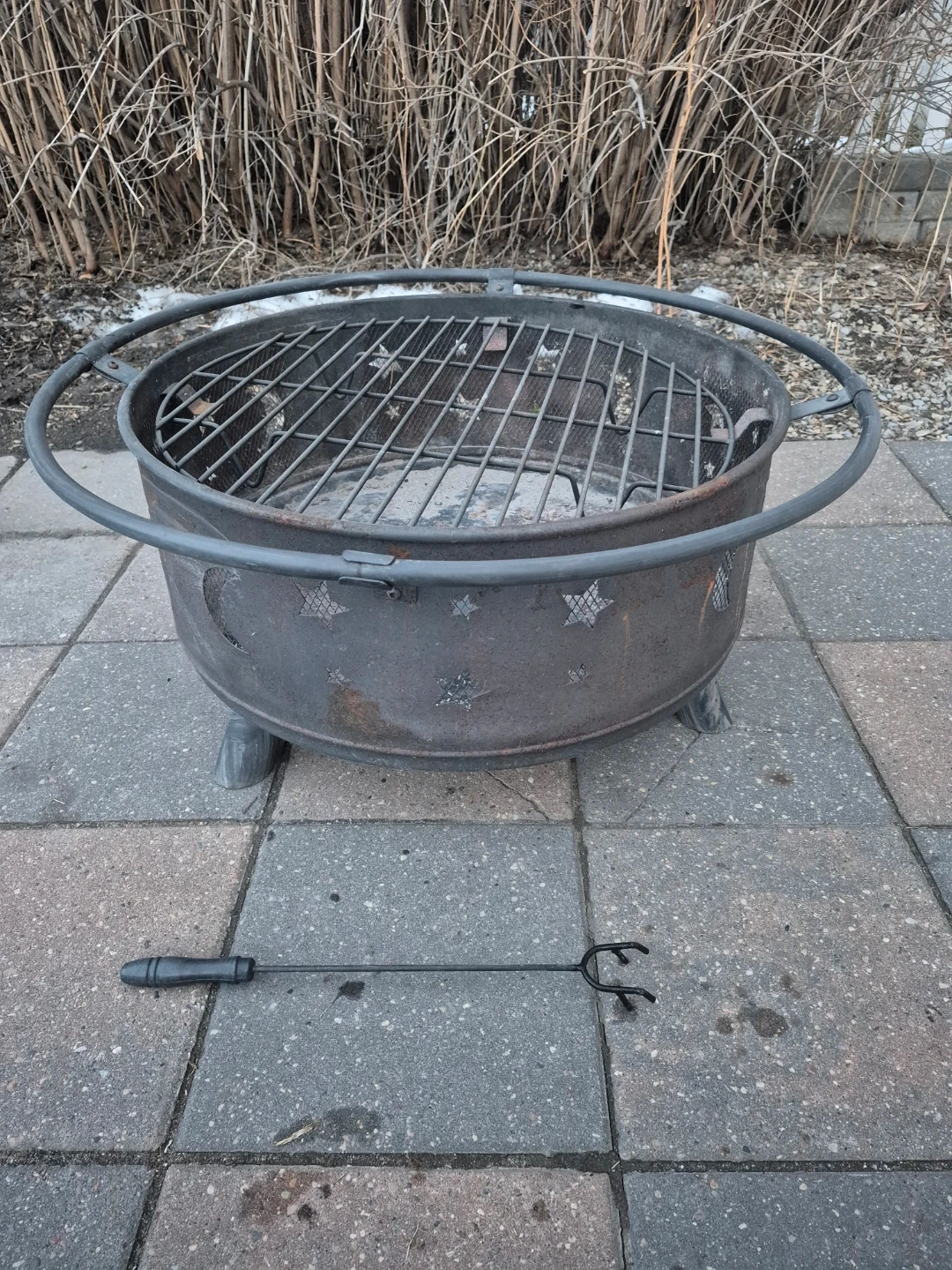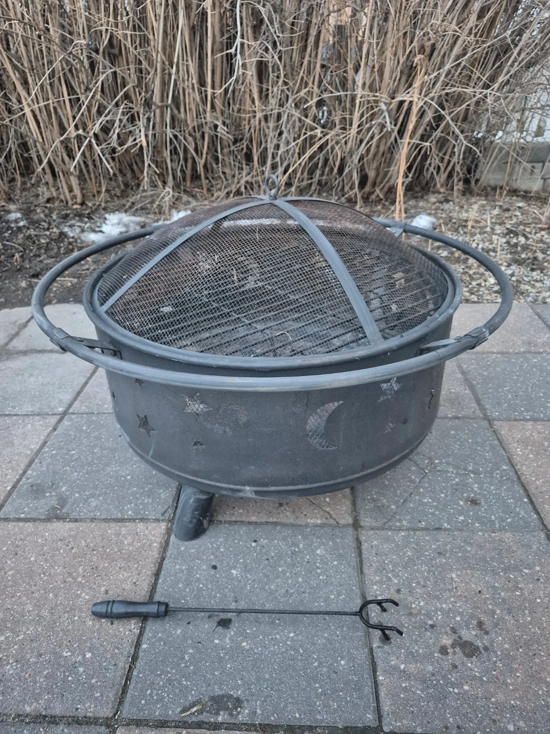 Selling a lightly used fire pit, perfect for those backyard bonfires! It comes with a grill for cooking, a spark screen to keep things safe and a cover to protect it from the elements. Also includes a poker to move the grill or spark cover.