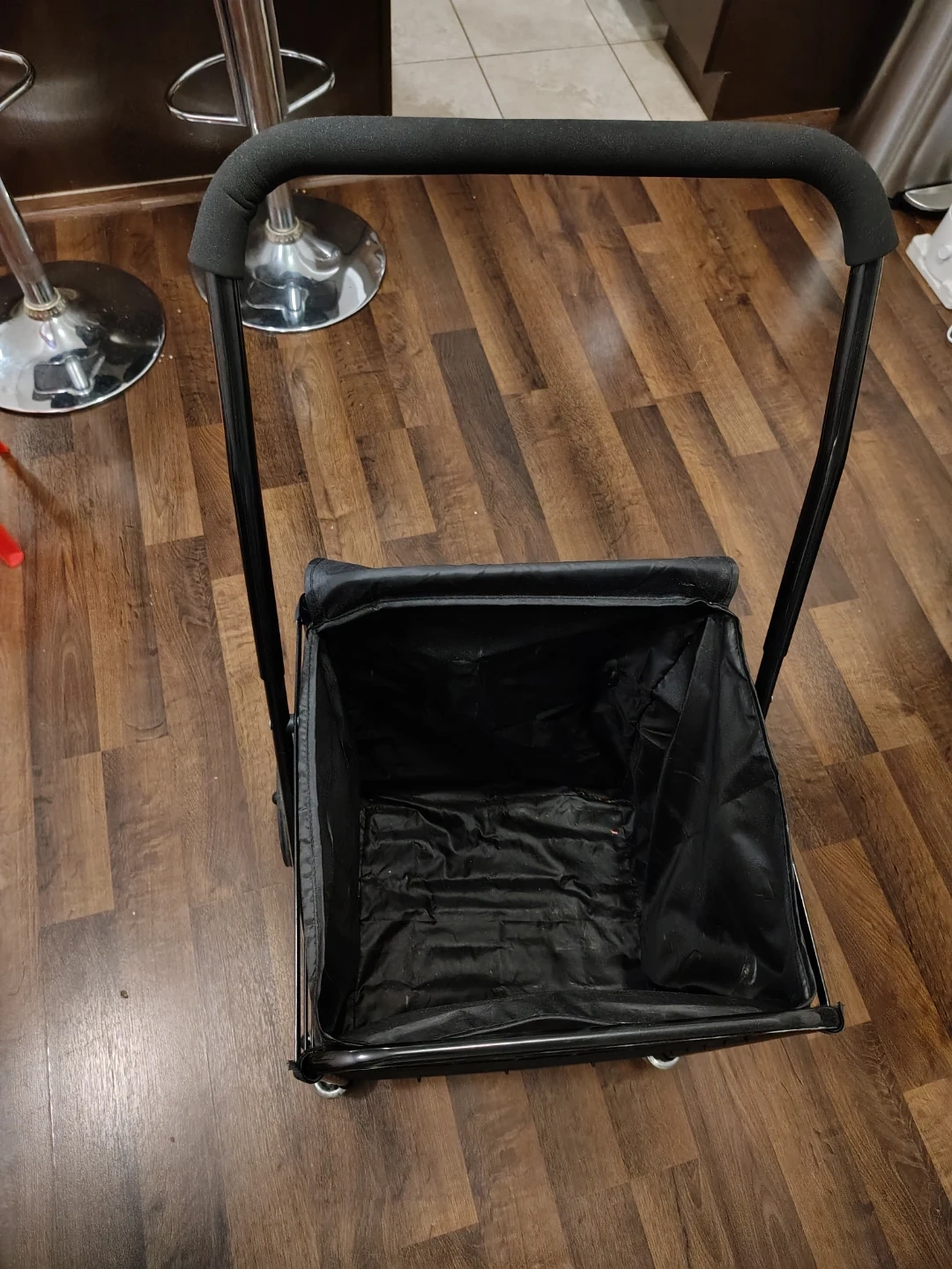 Selling a handy black folding shopping cart. It's in great shape and ready to make your grocery trips a breeze! Easy to maneuver and folds up for convenient storage