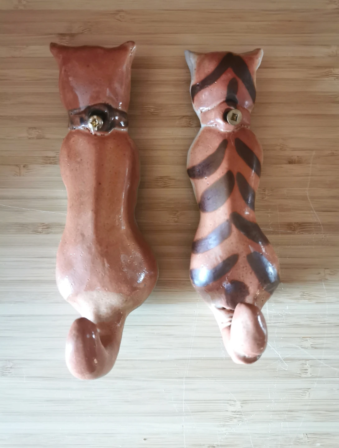 Beautiful Vintage Stoneware Cat Wall Hooks.