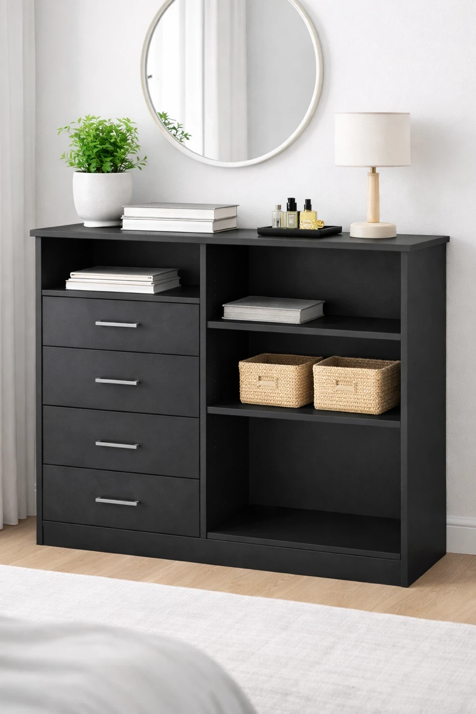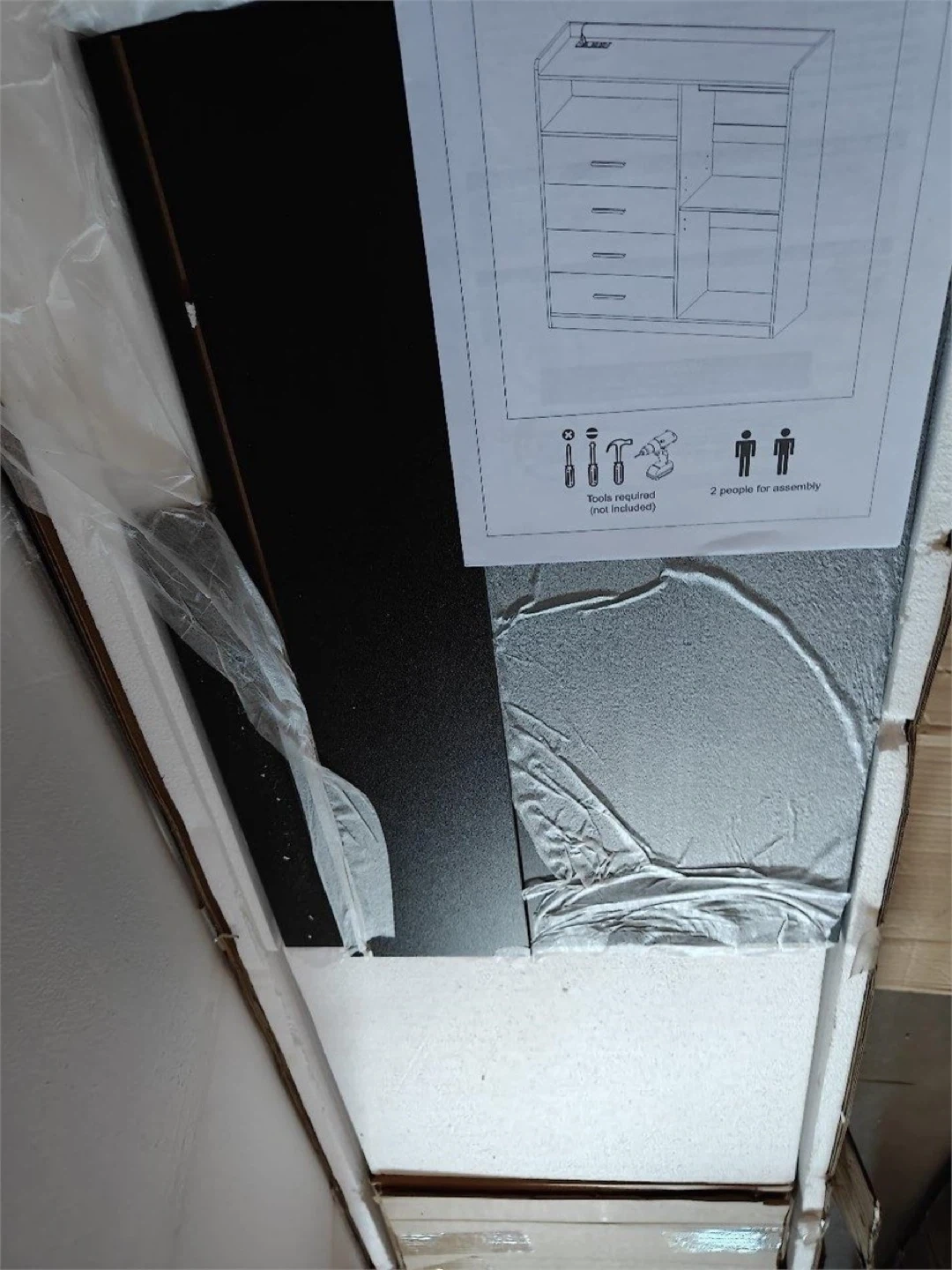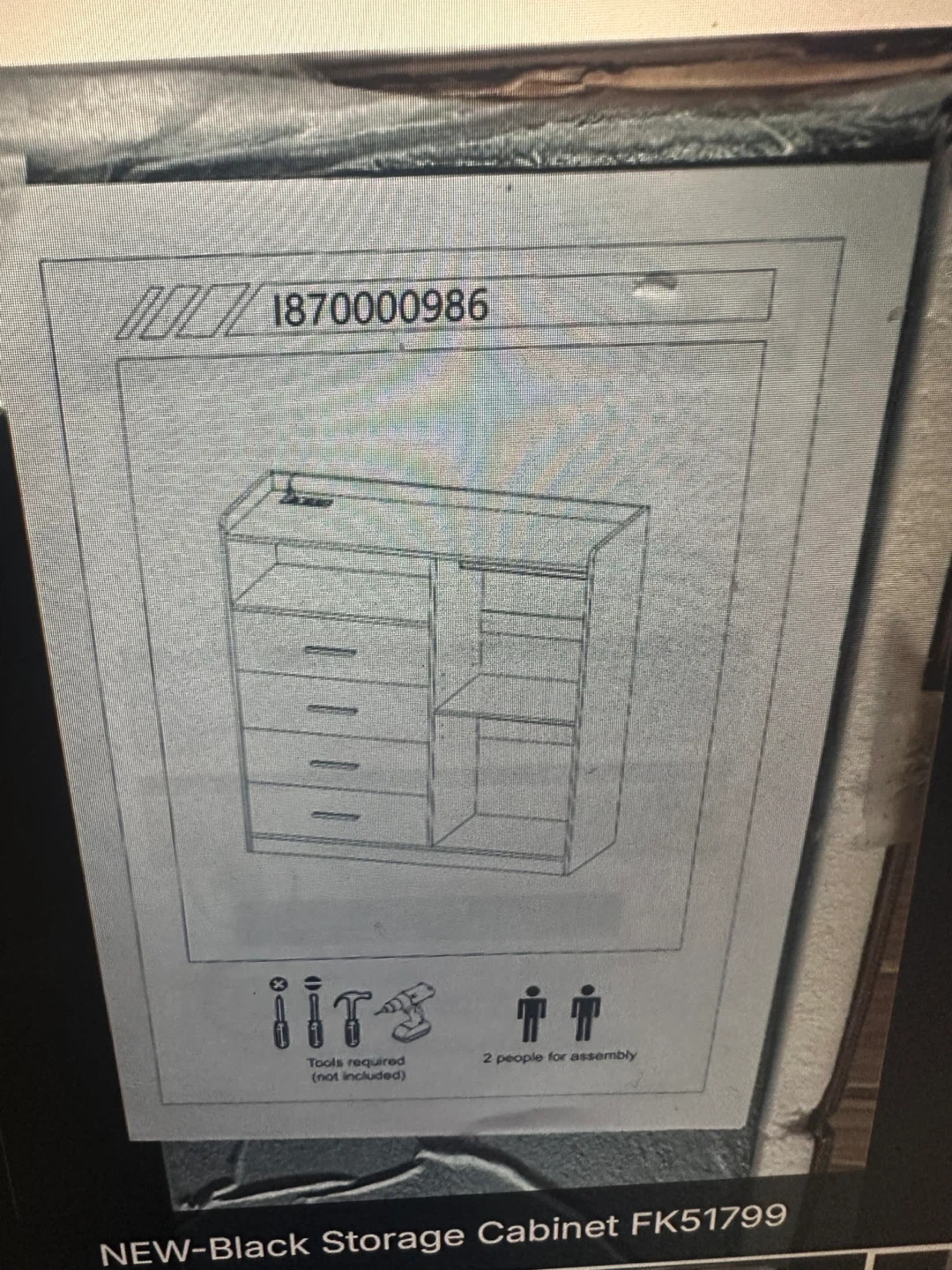 I'm selling a new black storage cabinet. It's still in its original packaging, This cabinet features drawers and shelves, perfect for organizing any room