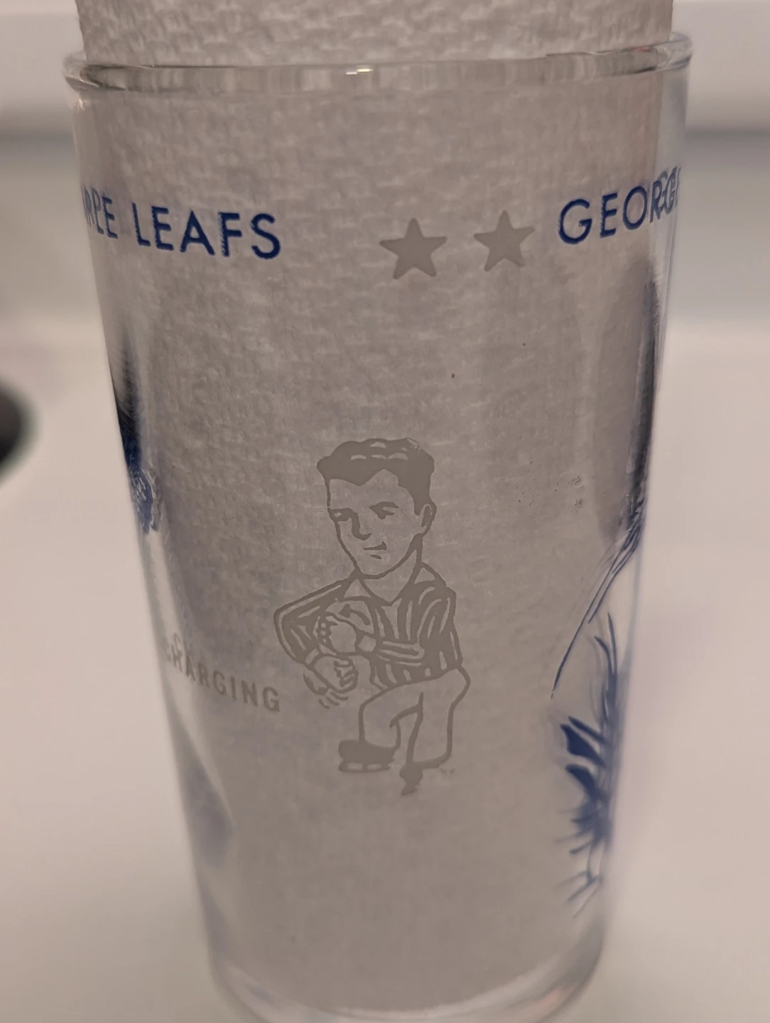 OFFERS: 1960-61 George Armstrong Toronto Maple Leafs SINGLE York Peanut Butter Juice Glass - Highly collectible glass. No cracks.