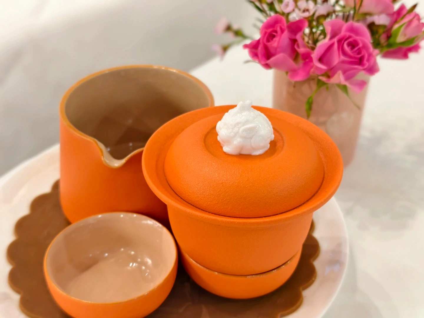 Orange Tea Set with Two Cups