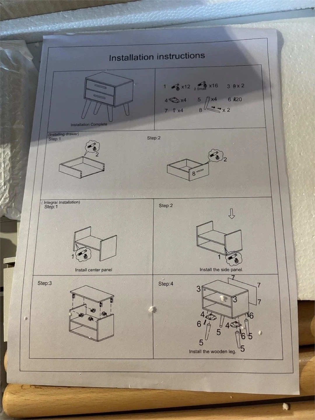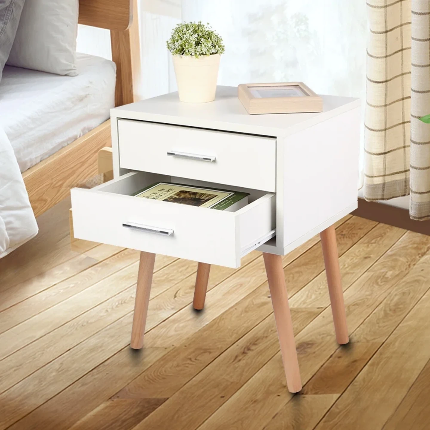 Selling a brand new, still-in-box white nightstand! It features a clean design with two drawers and wooden legs. Assembly instructions are included. Perfect for adding a touch of modern style to your bedroom