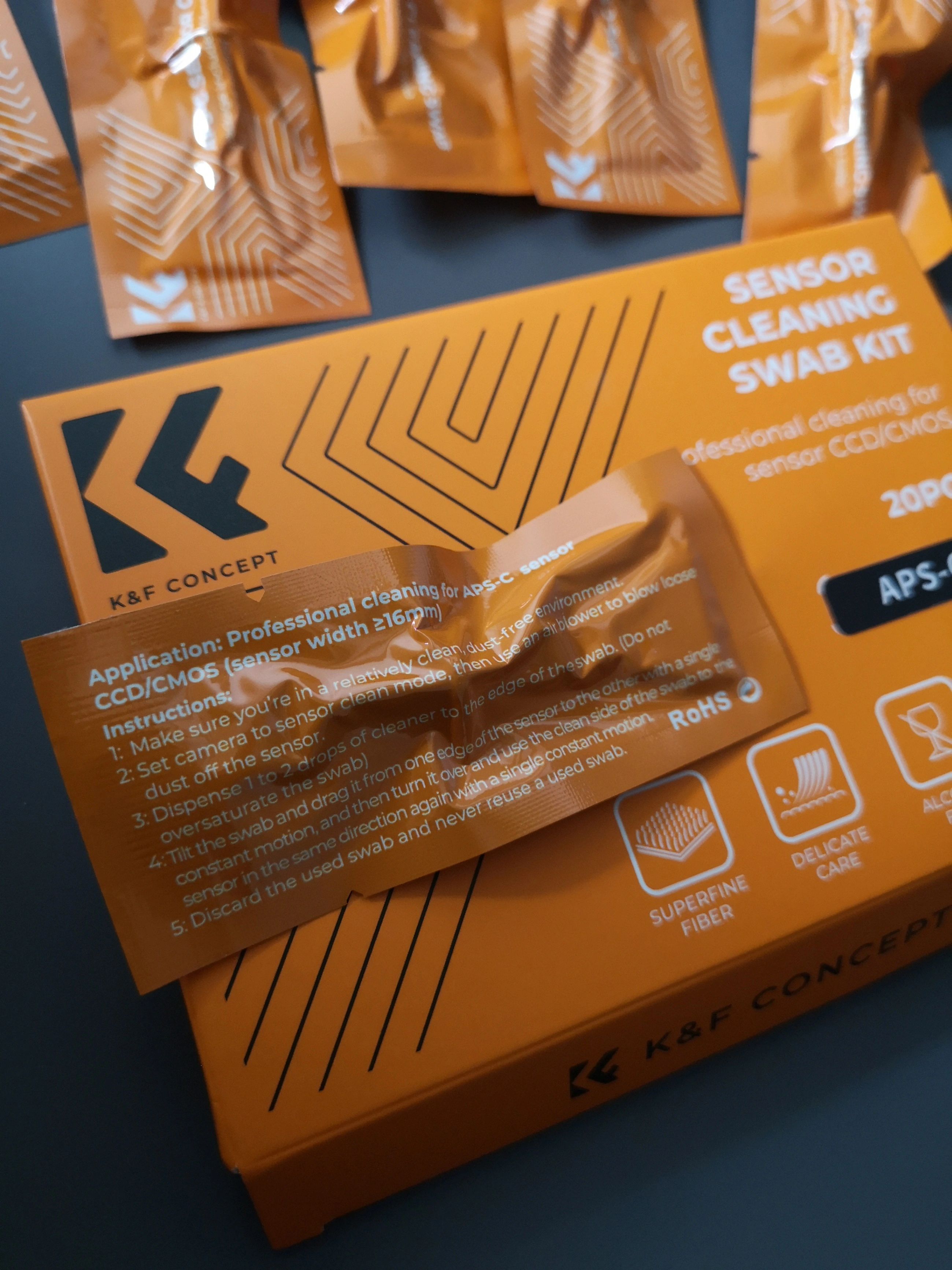 Selling a K&F Concept Sensor Cleaning Swab Kit! This is a professional cleaning kit for sensor CCD/CMOS. It includes 16 pieces in the photo, and is alcohol-free and leaves no residue. The swabs are made with superfine fiber and are designed for delicate care. Brand new and sealed packing.