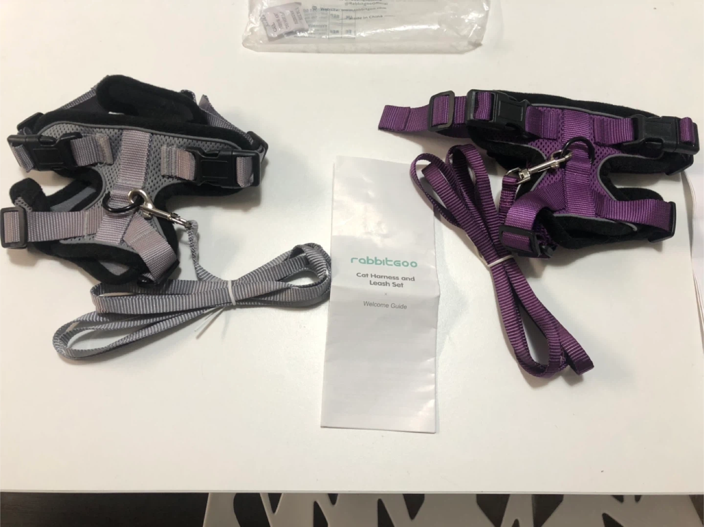 Selling a pair of Rabbitgoo cat harness and leash sets! One is grey and the other is purple. They come with the welcome guide. Perfect for taking your feline friend on safe outdoor adventures, both brand new and size Xs for small cat $10 each firm thanks.