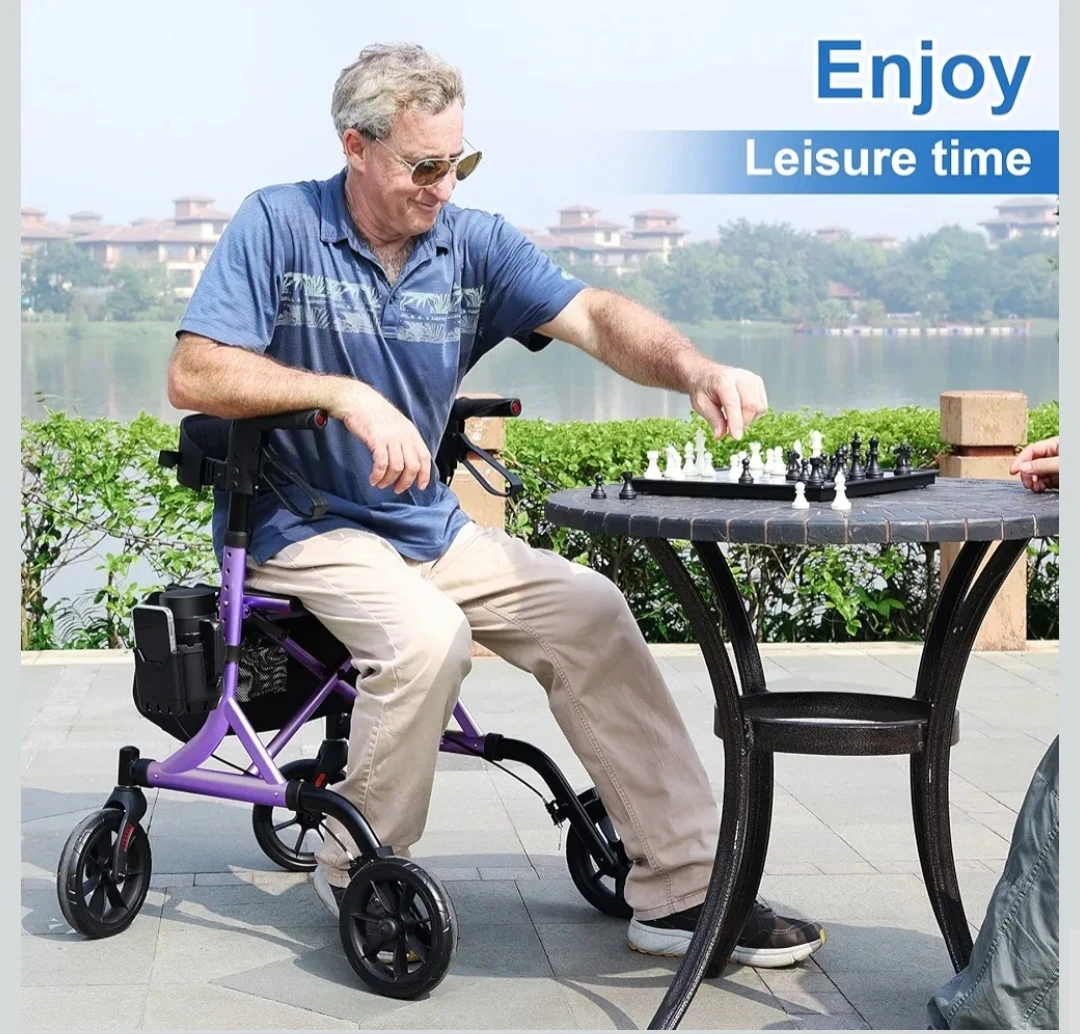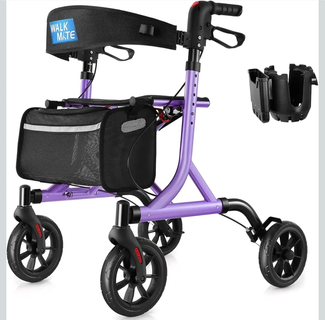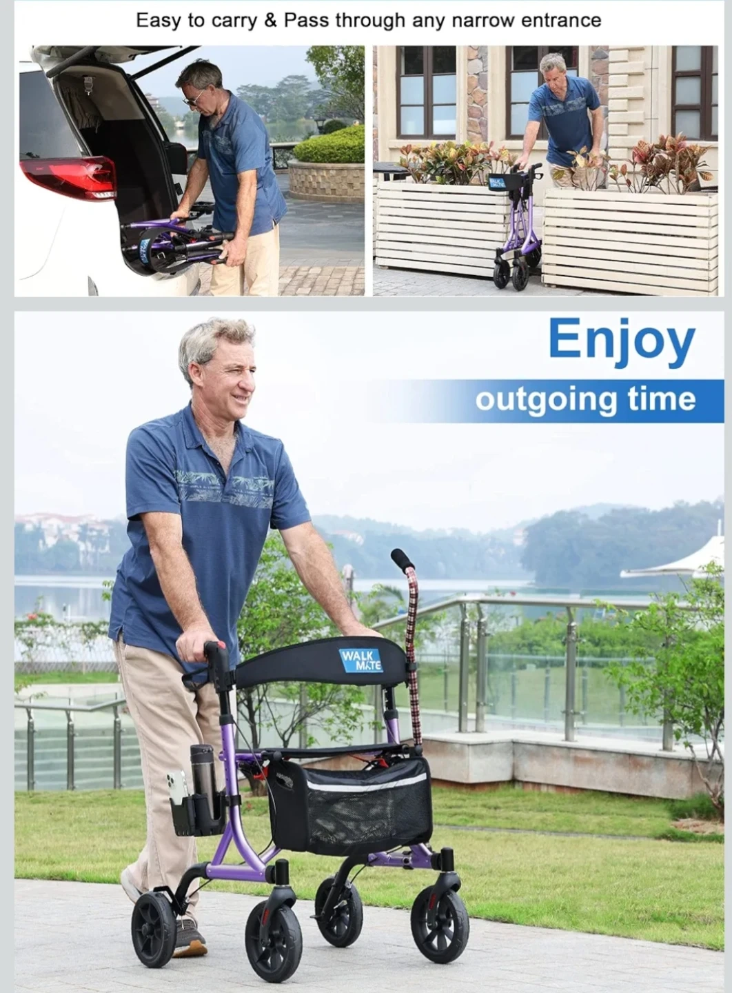 Check out this Walk Mate folding walker! It features a triangular structure for doubled sturdiness and safety. It's foldable and ultra-light, with a one-hand folding design.