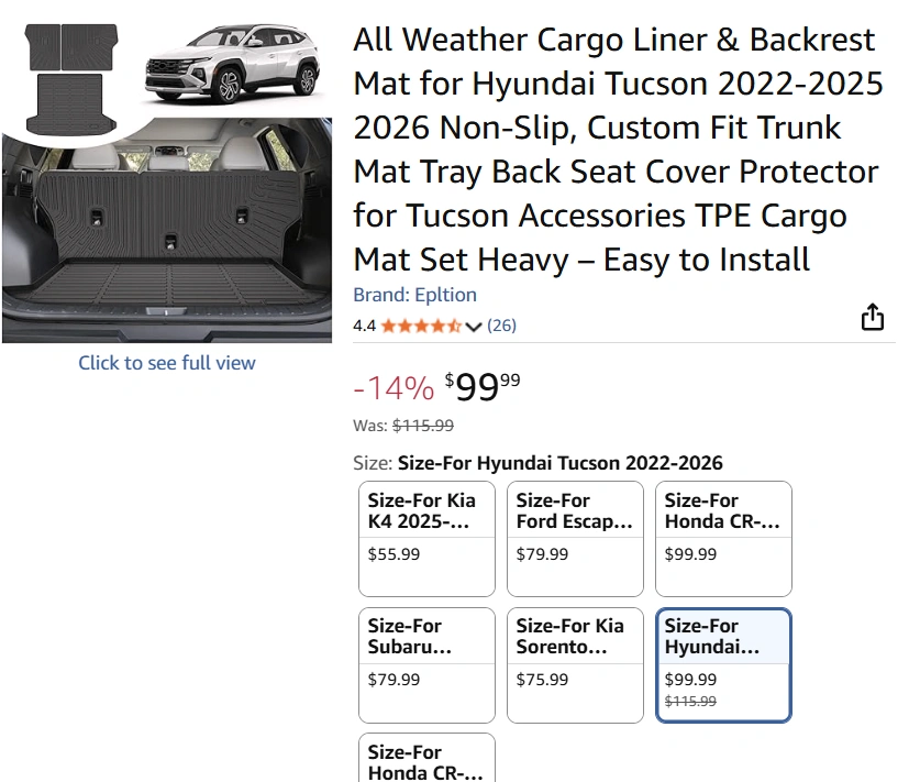 NEW 2022-2026 Hyundai Tucson All Weather Cargo Liner Mat