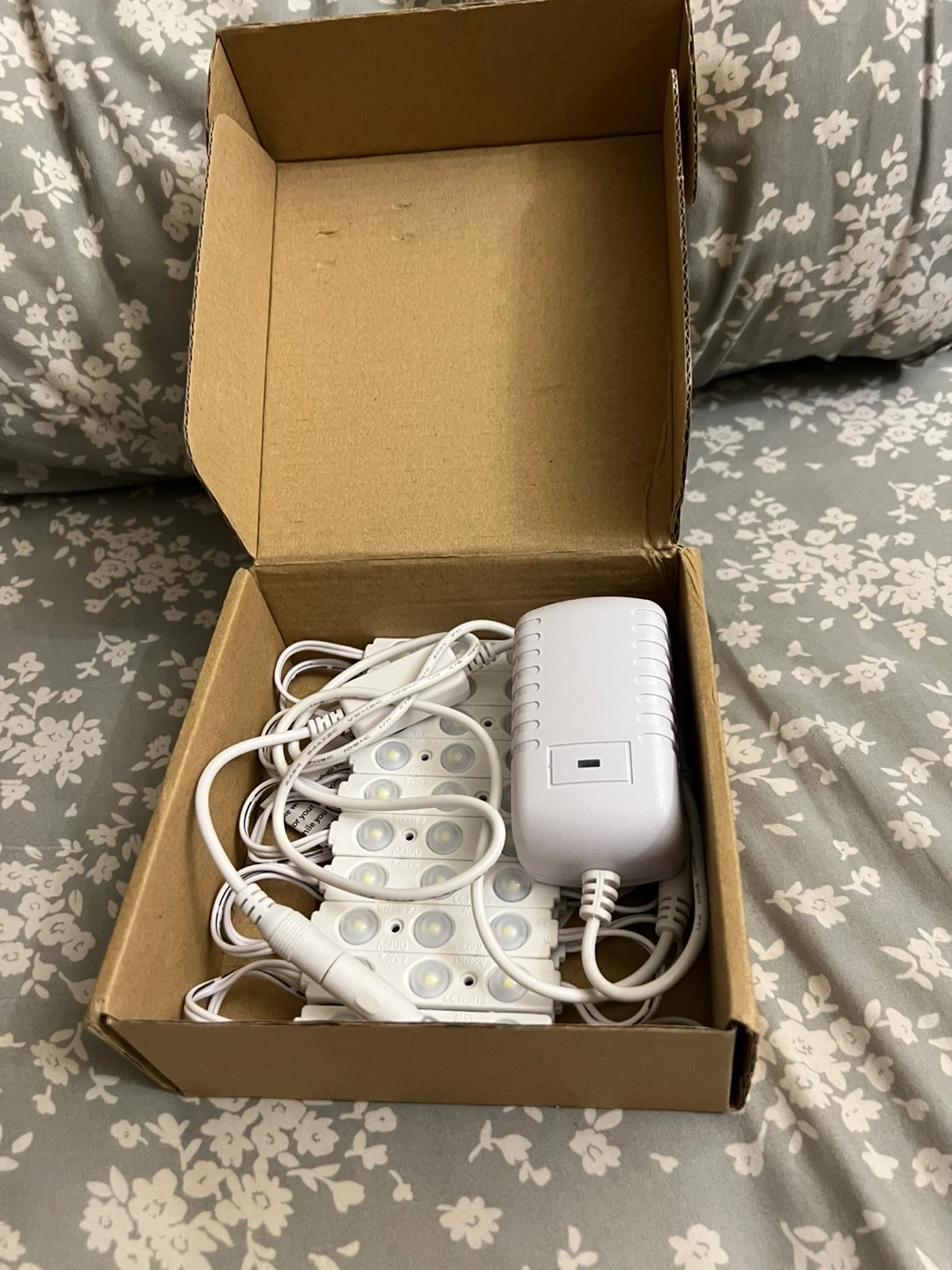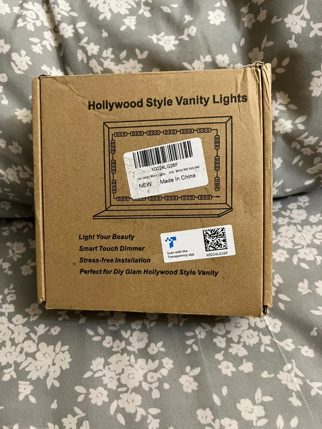 Selling a new set of Hollywood Style Vanity Lights! The box includes the LED vanity lights and the power adapter. These lights feature a smart touch dimmer and offer stress-free installation for a perfect DIY glam Hollywood style vanity. The output voltage is DC 12V with a color temperature of 6000K and up to 1200lm brightness