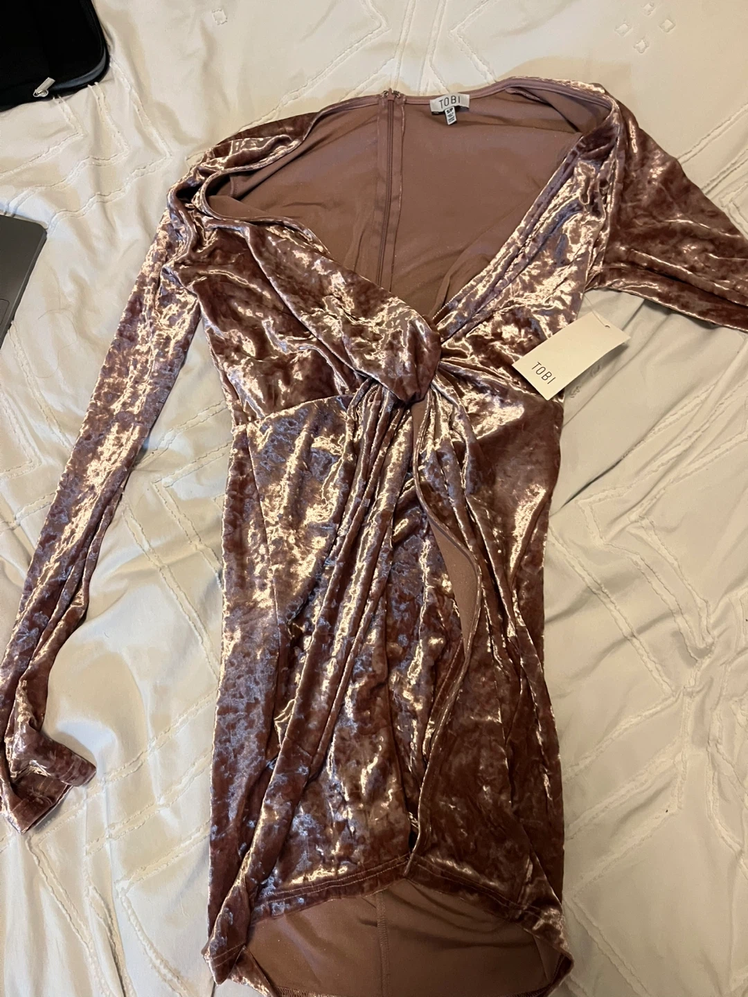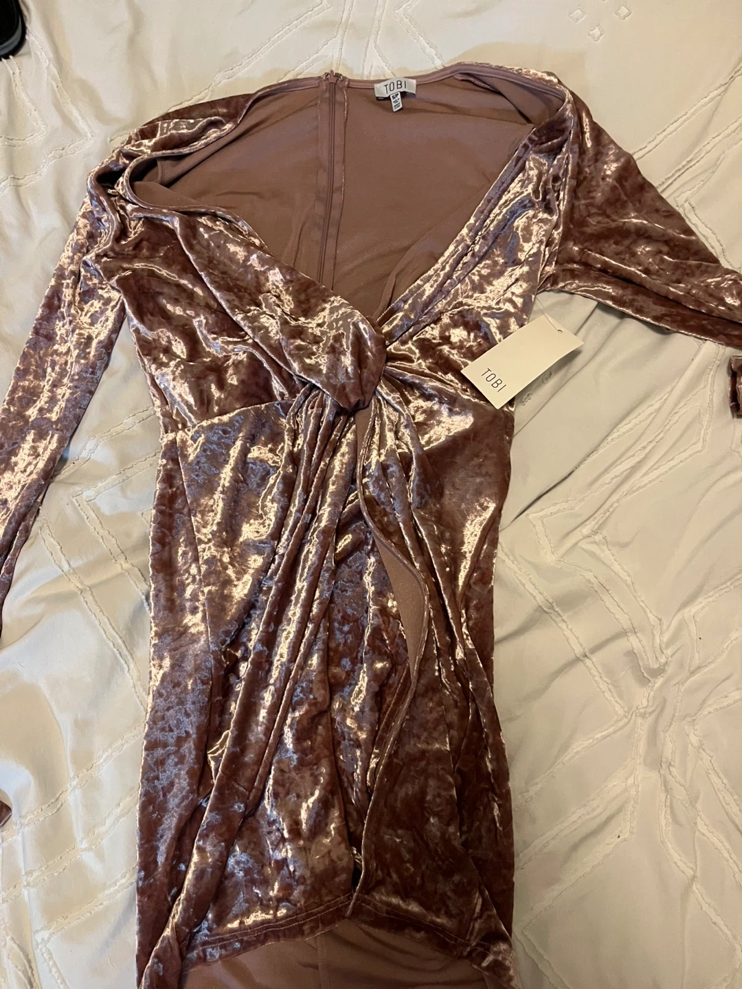 New with tags. Selling a cute velvet mini dress from TOBI! It's a size small and in great condition. Perfect for a night out or a special occasion. The material is soft and luxurious, making it super comfy to wear.