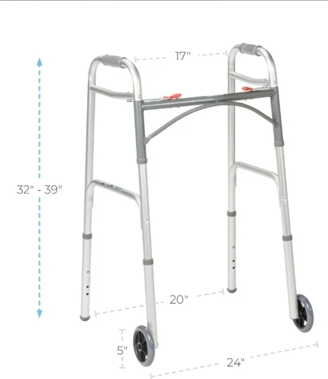 Deluxe Two Button Folding Walker with 5" Wheels π₯