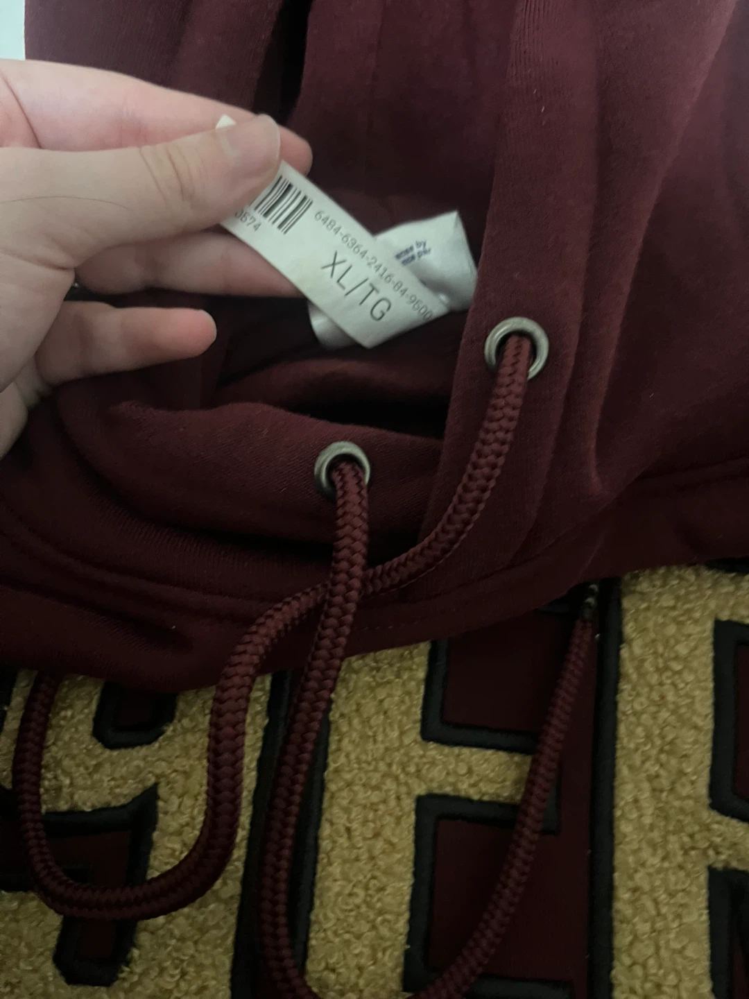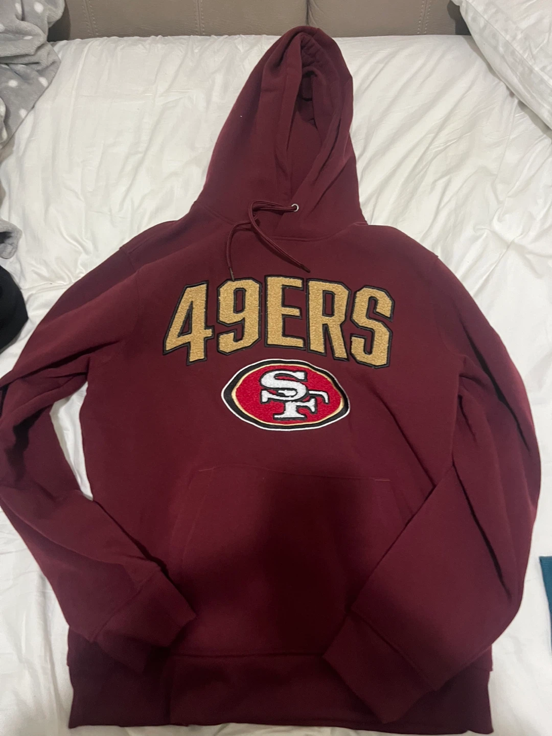 Selling a 49ers hoodie in size XL! It's in great condition and ready for a new fan. The colour is a nice maroon/burgundy.