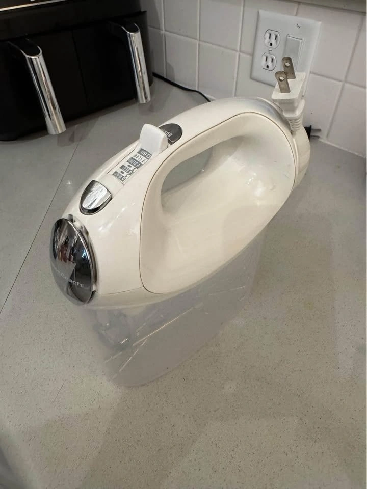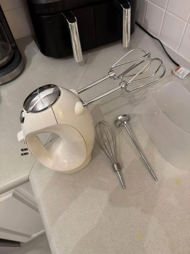 This mixer handles everything from fluffy whipped cream to thick cookie dough. Compact design with built-in storage keeps your kitchen tidy. Plug-and-play convenience with a powerful motor that wonβt quit.