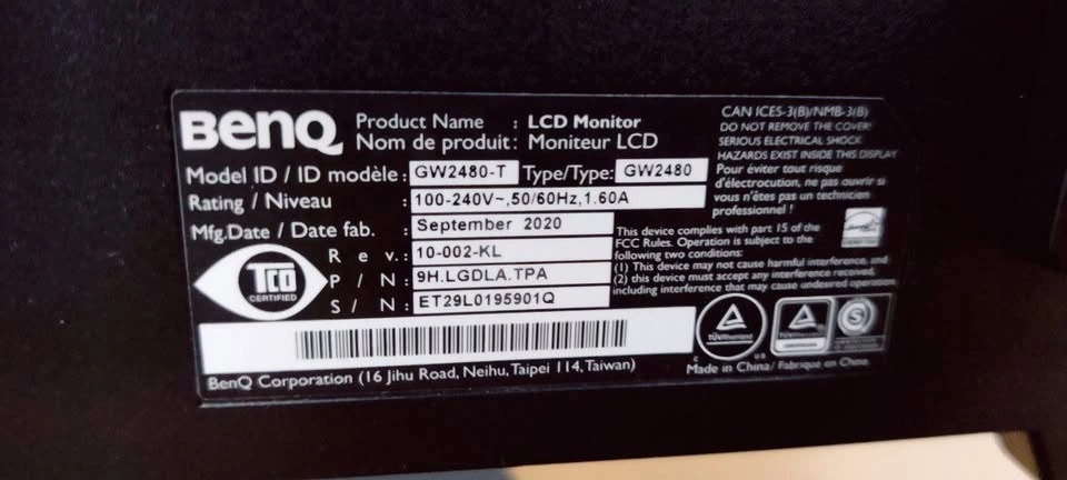 BenQ GW2480T 24-inch LCD monitor, perfect for work, study, or casual use.